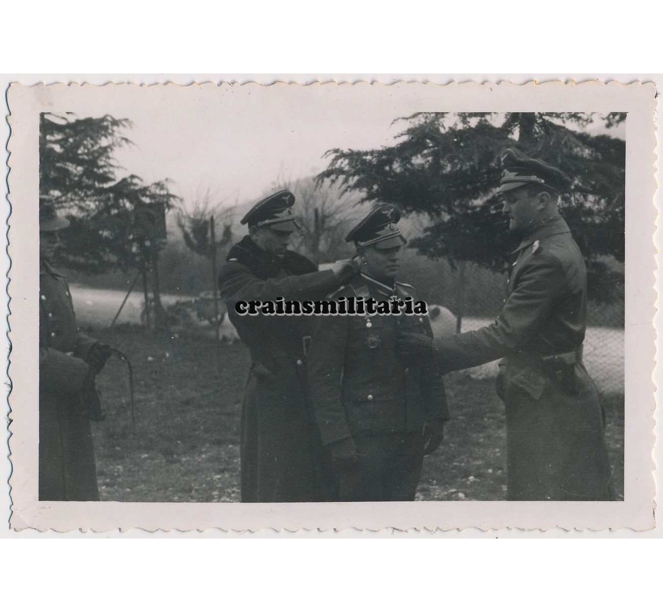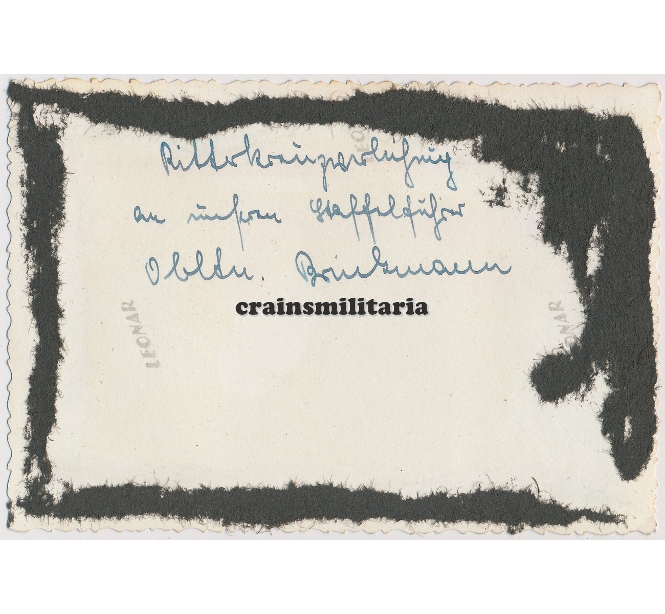 - 7x10 cm Leonar private photo, described "Ritterkreuzverleihung an unseren Staffelführer Obltn. Brinkmann" on the back.