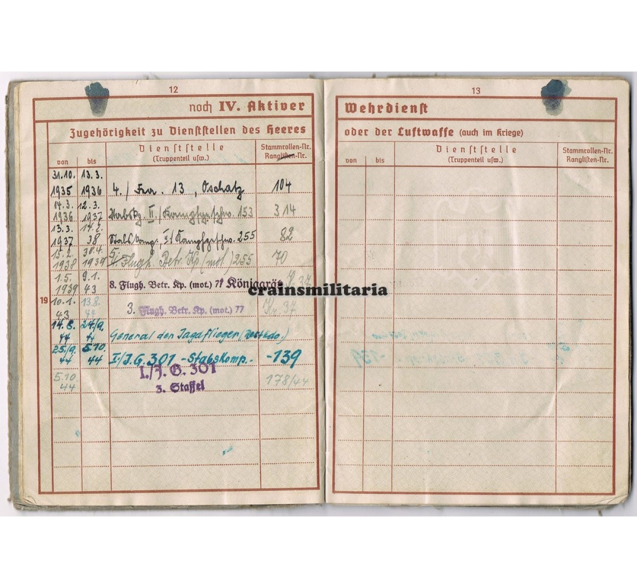 Wehrpass grouping KG77 and JG301