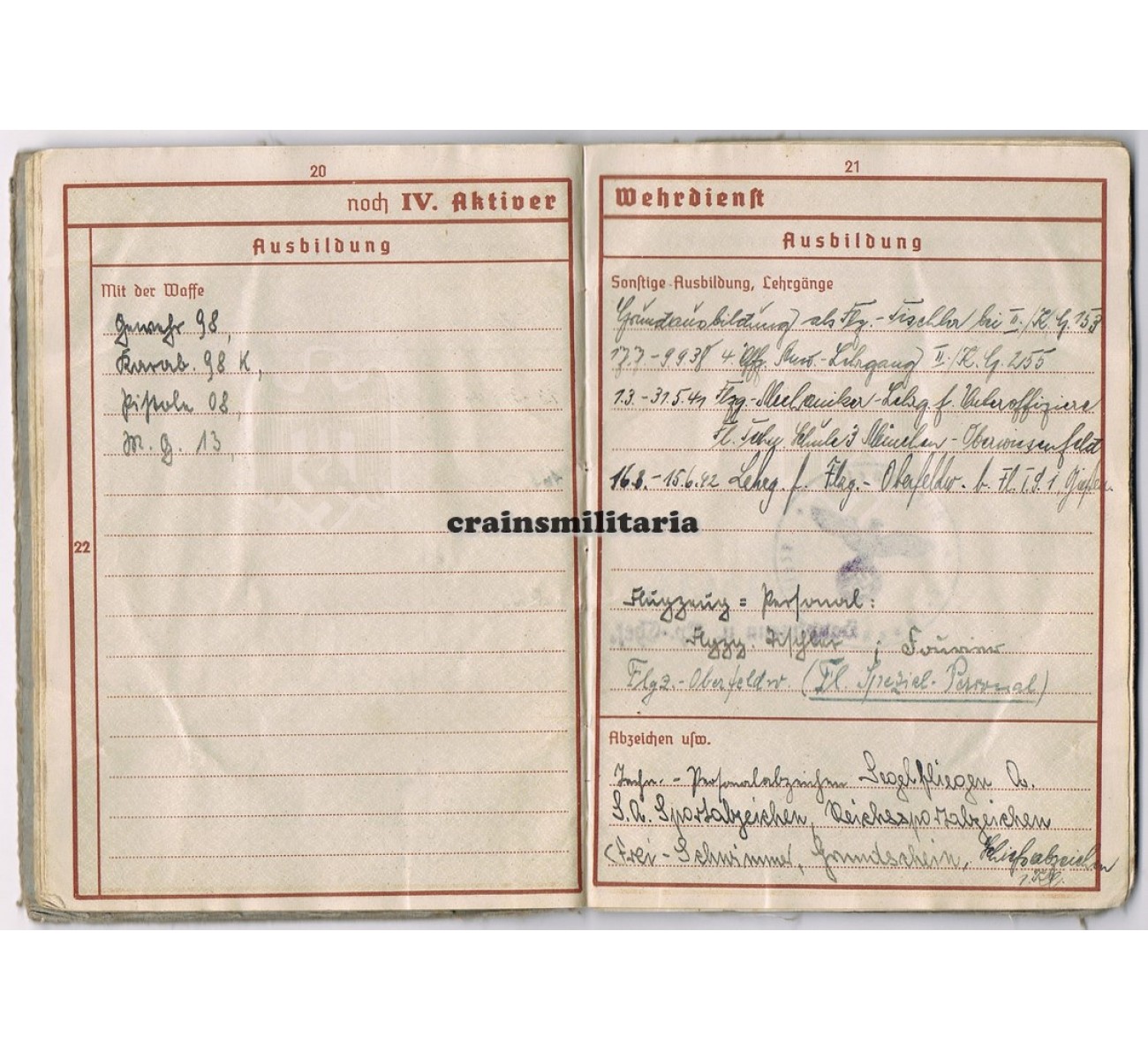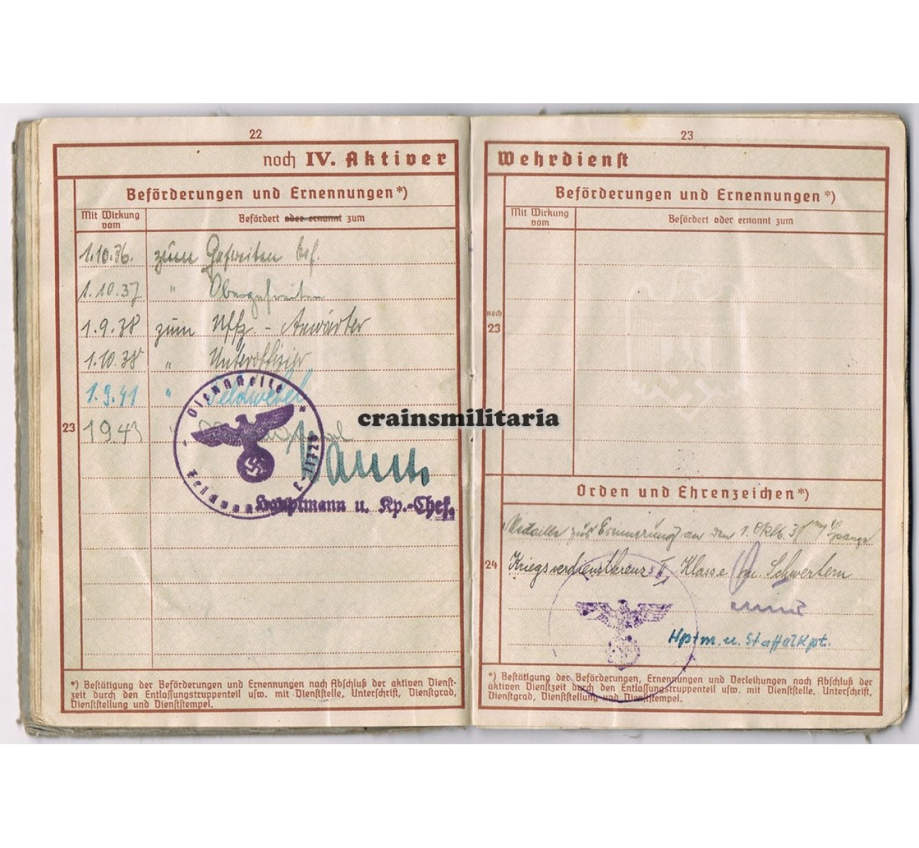 - The Wehrpass is in used but good and complete condition, and comes with the following documents, which have suffered more from humidity damage: