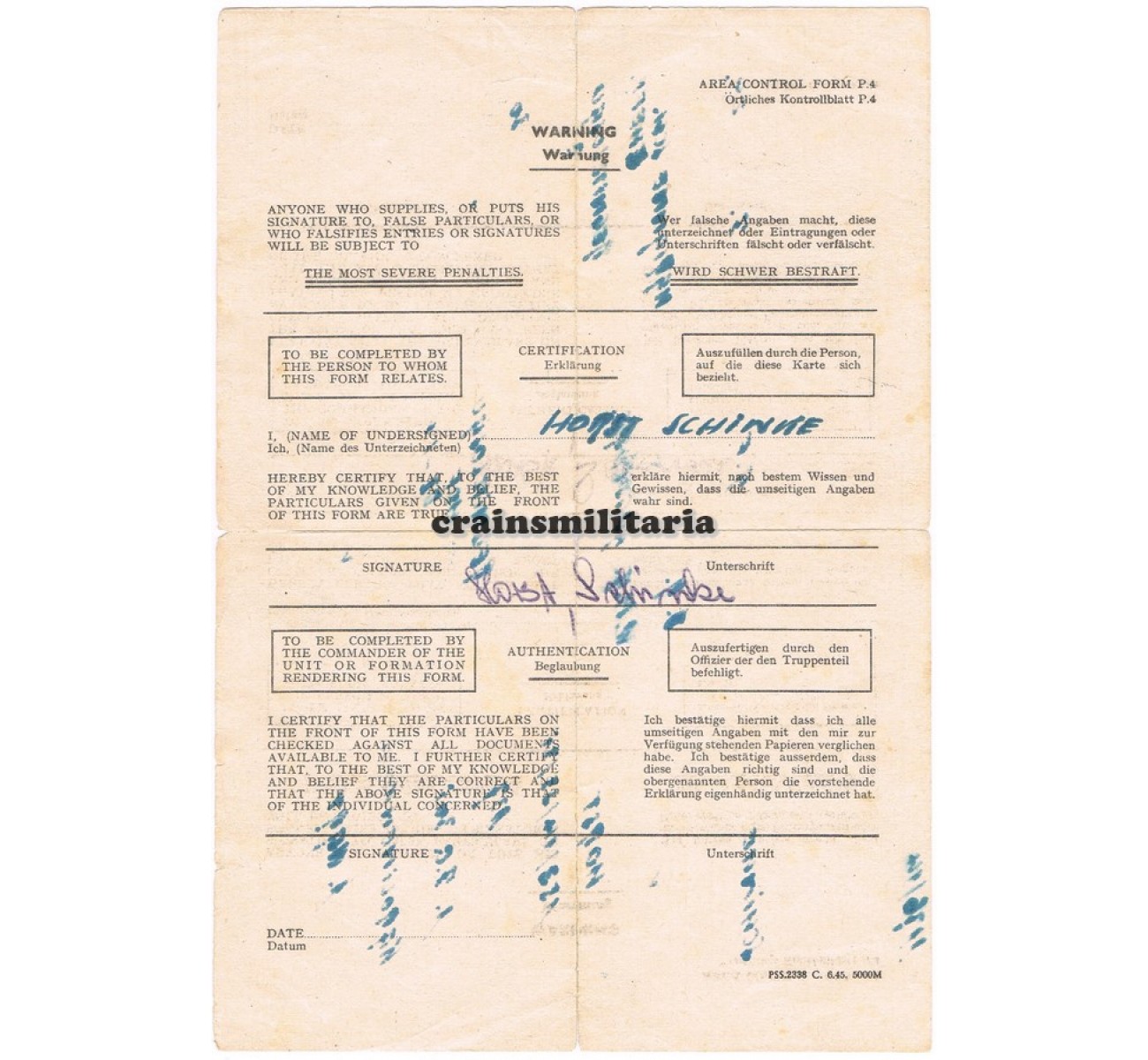 - Wehrpass and document grouping to Oberfeldwebel Horst Schinke, who served with Jagdgeschwader 301 and Kampfgeschwader 77.
