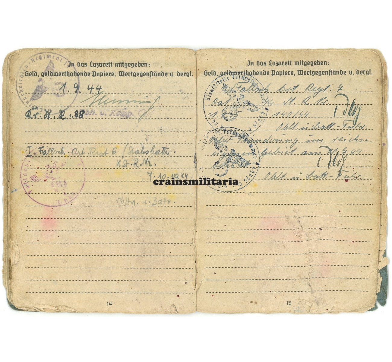 Fallschirmjäger Soldbuch - 7.FJD Holland, Reichswald, Rhein WIA