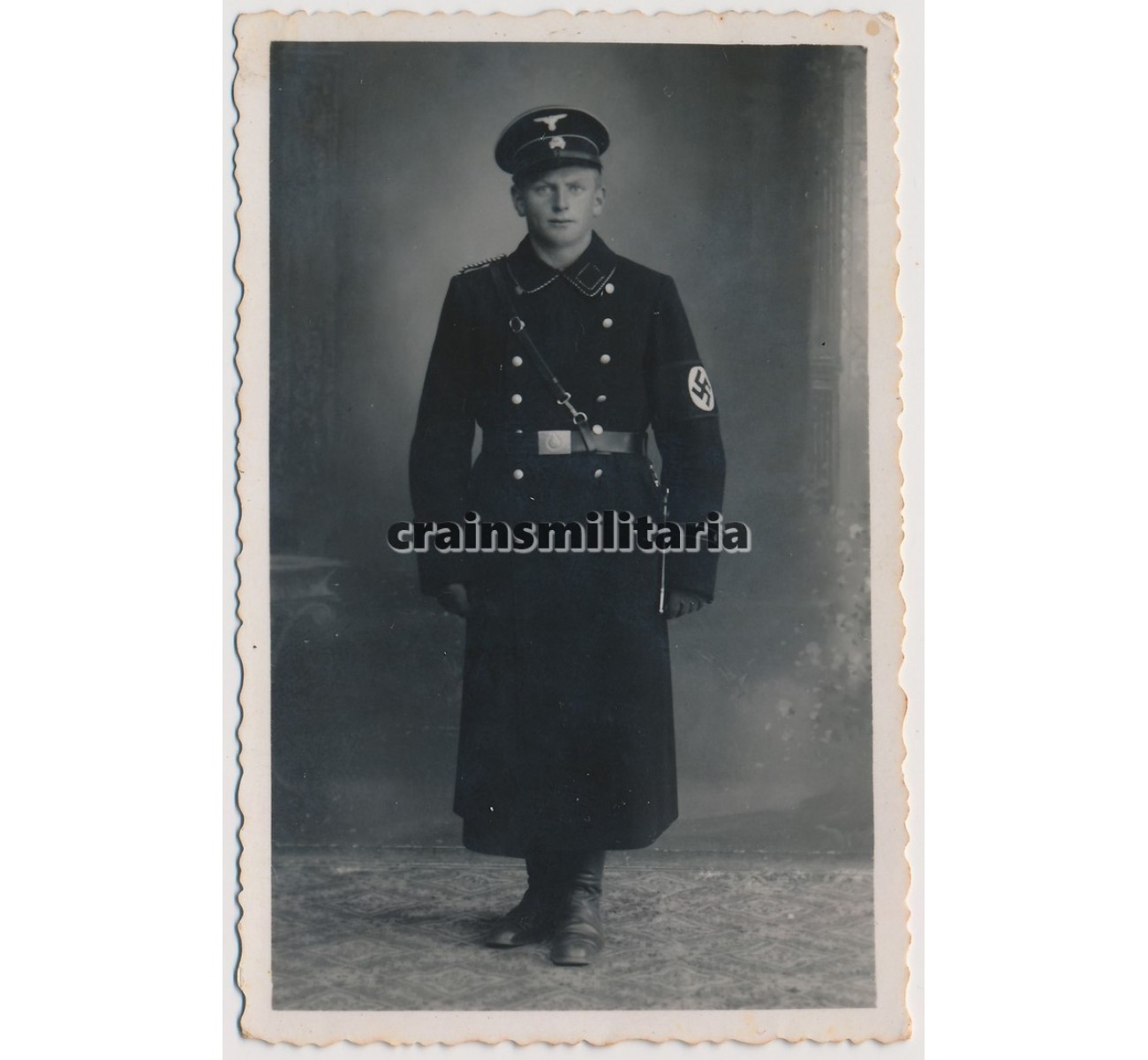 Portrait photo of a member of the Allgemeine SS, wearing a cufftitle with the number "4".