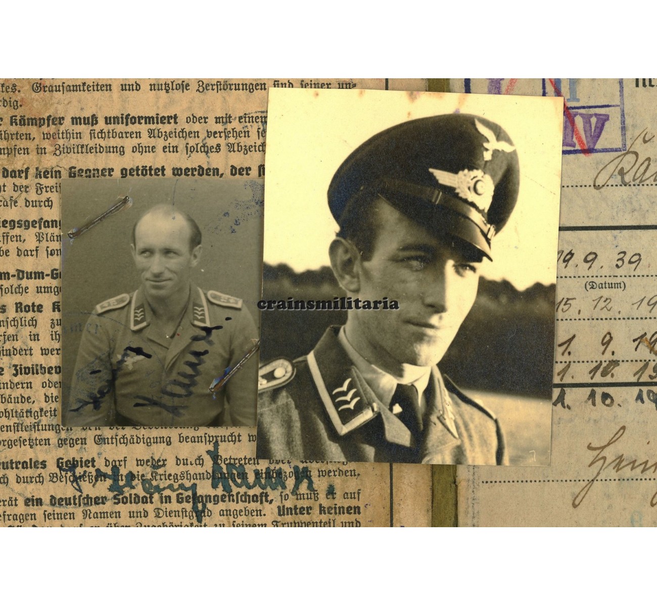 The Soldbuch is in a very good and 100% complete condition. It is packed with interesting entries, also including Zugführer training on the 200 cm Flakscheinwerfer, tropical equipment, the Führergeschenk, a "Sportarmbanduhr" watch entered on the awards page, two Luger P.08 pistols, two rarely seen instructions on the severe consequences of forging marching papers, and much more. It comes with an extra portrait photo of Dames; both portraits show him wearing the shoulder boards of Flak.Ers.Abt.12 in Berlin-Lankewitz.