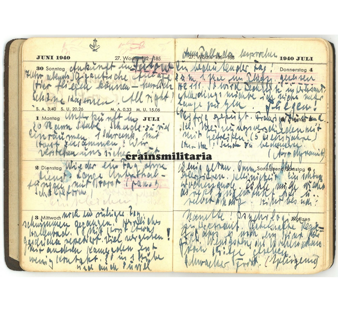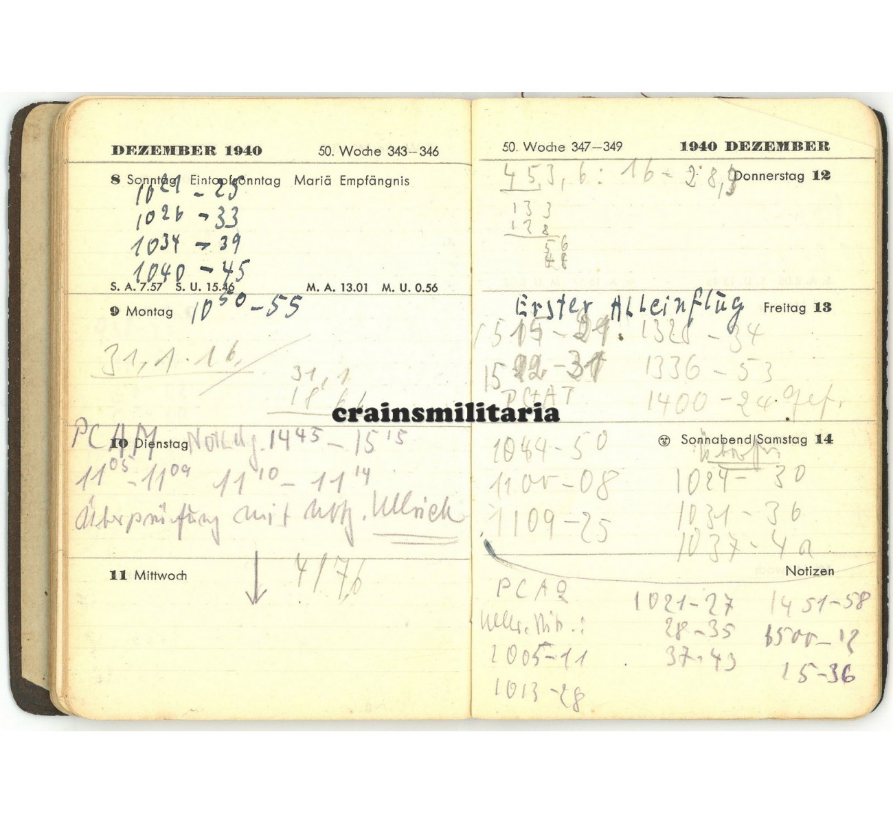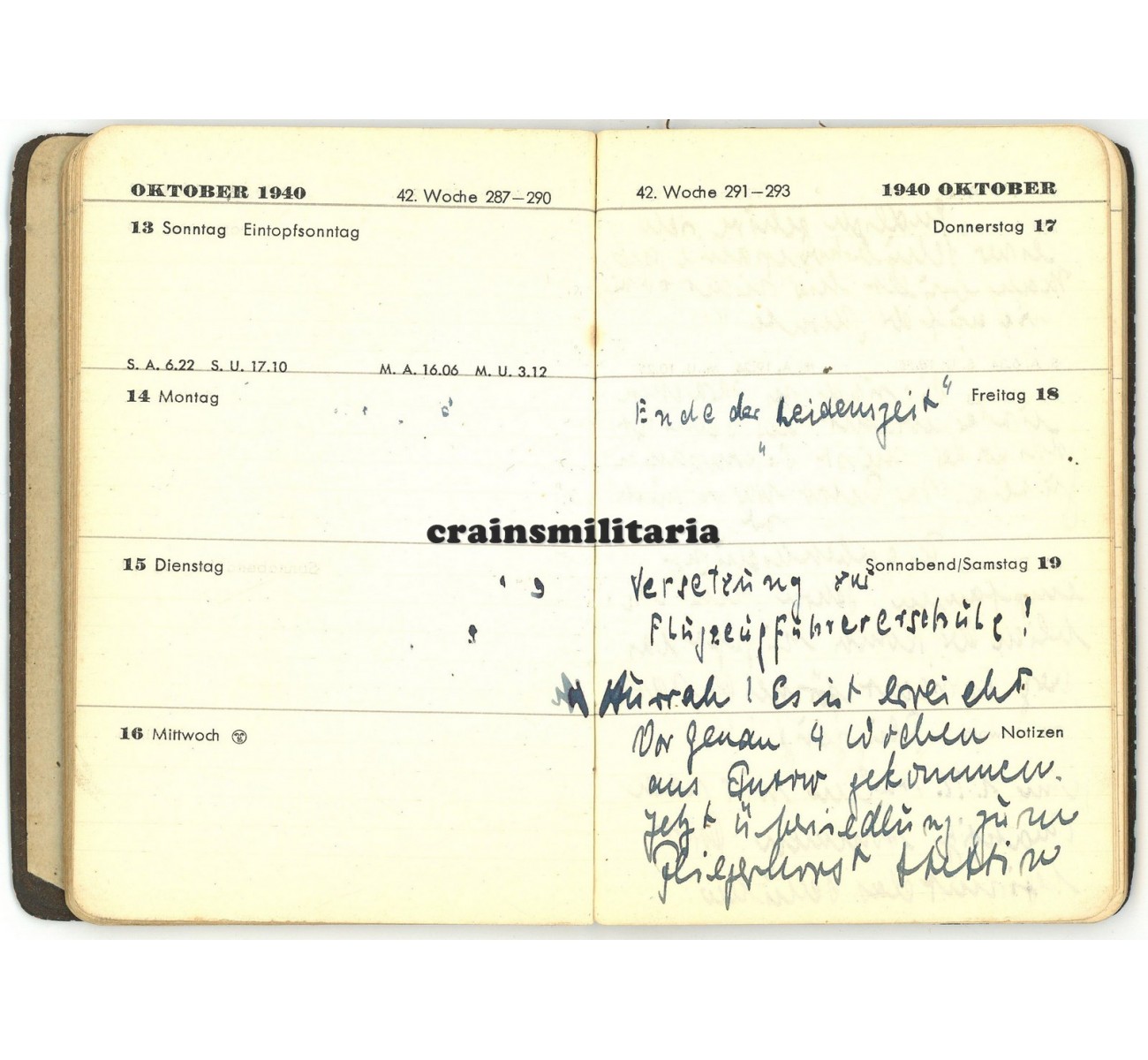 - His diary from 1940, detailing his recruit time and his first flights in pilot school in Stettin. Interesting to compare with the entries in the Flugbuch!