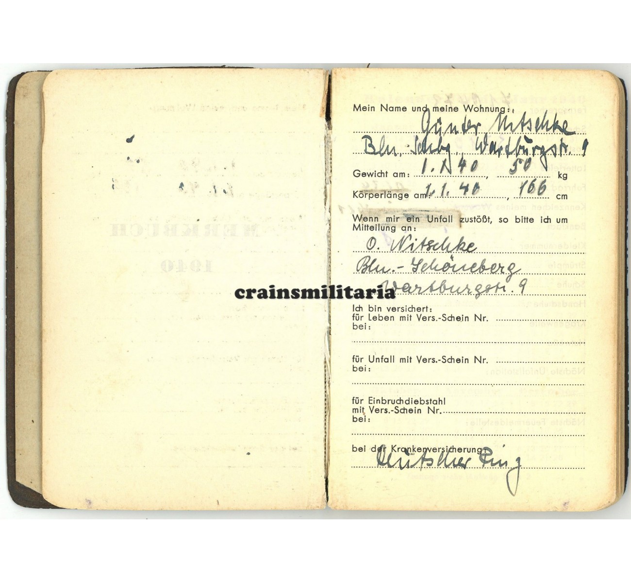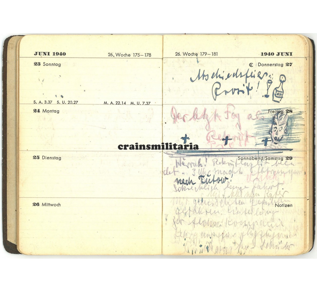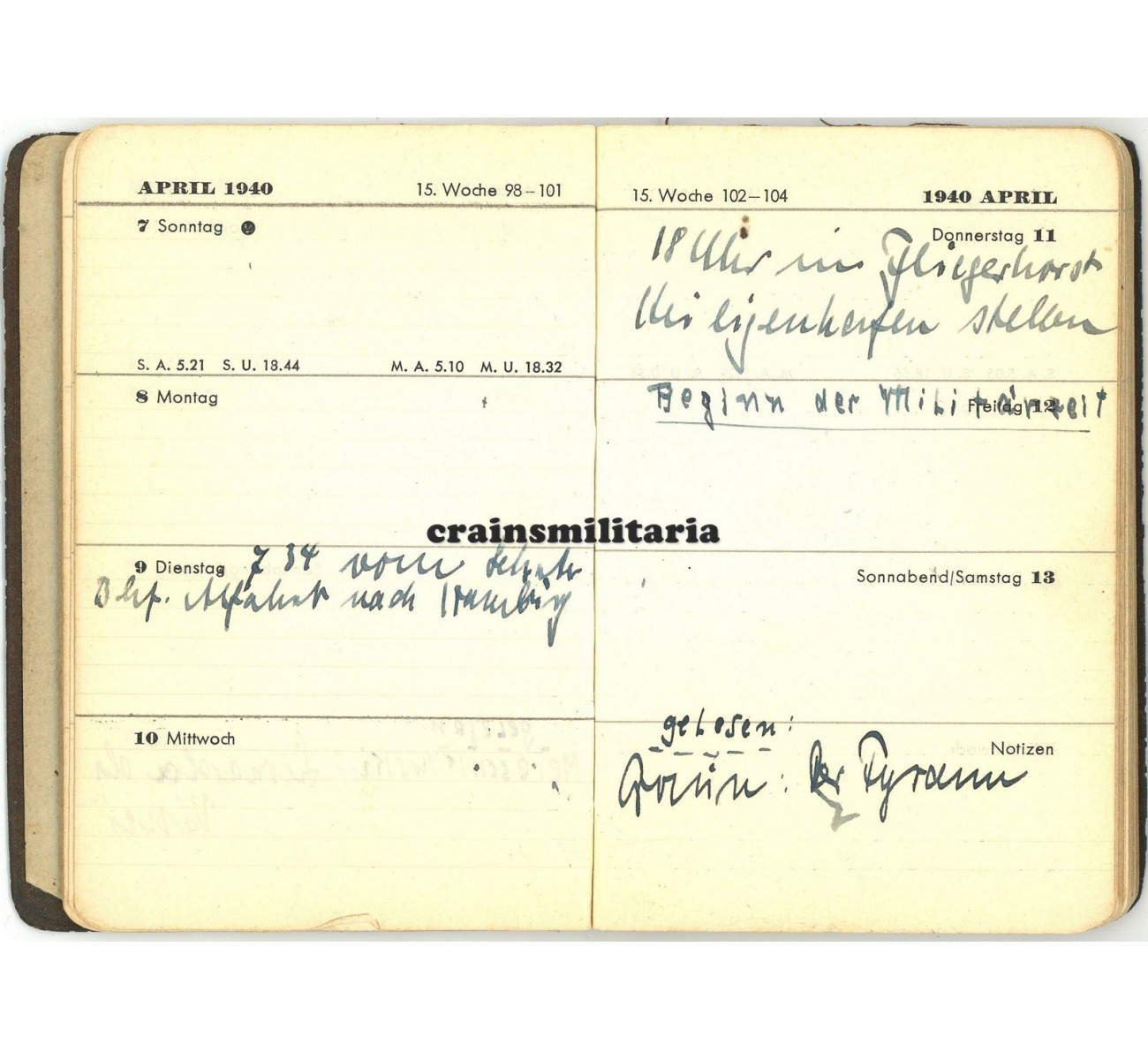 - His diary from 1940, detailing his recruit time and his first flights in pilot school in Stettin. Interesting to compare with the entries in the Flugbuch!