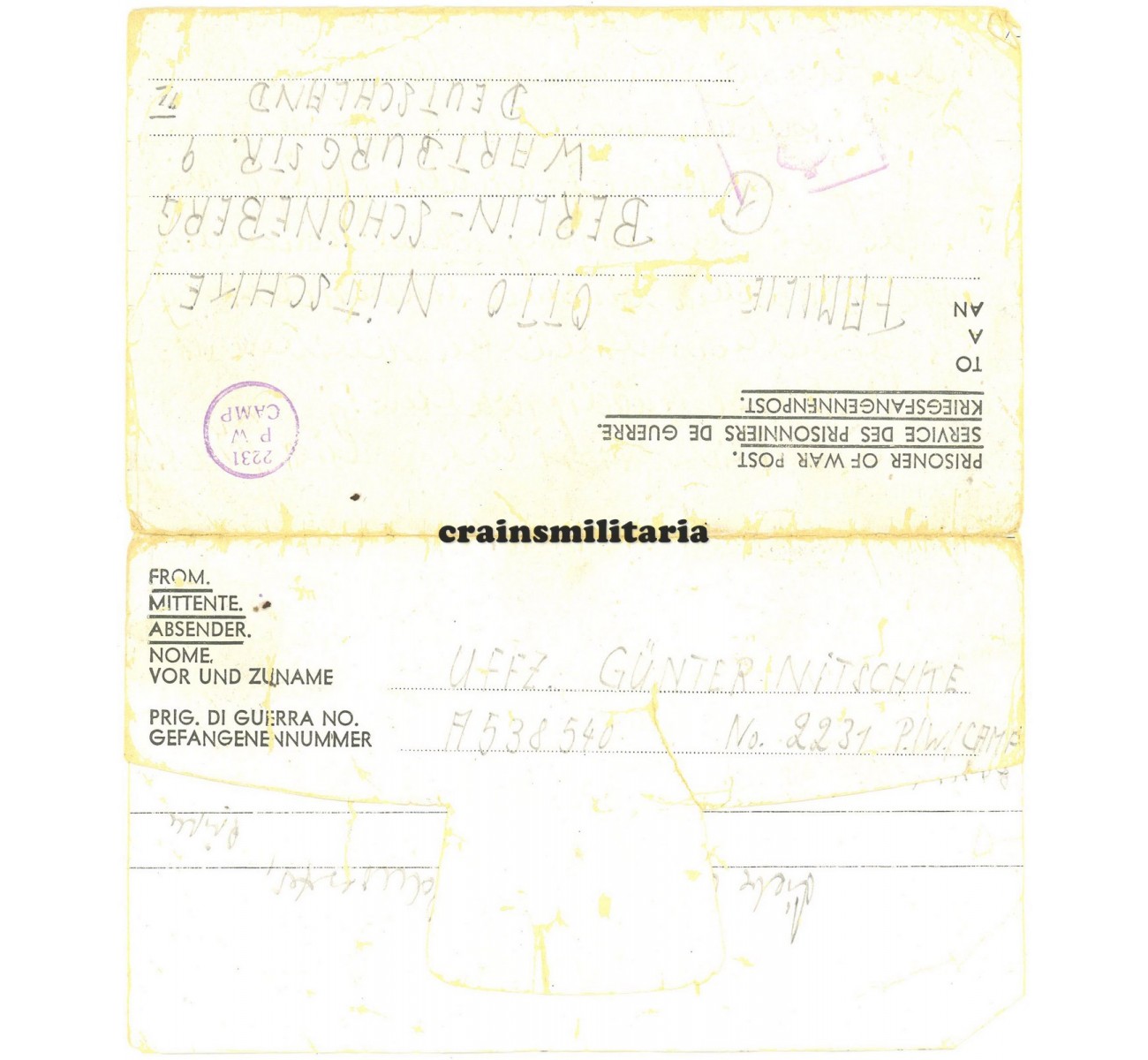 - "Kriegsgefangenenpost" POW Letter sent from P.W. Camp 2231 in England to his parents in 1945.