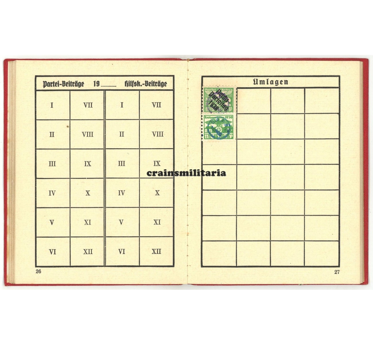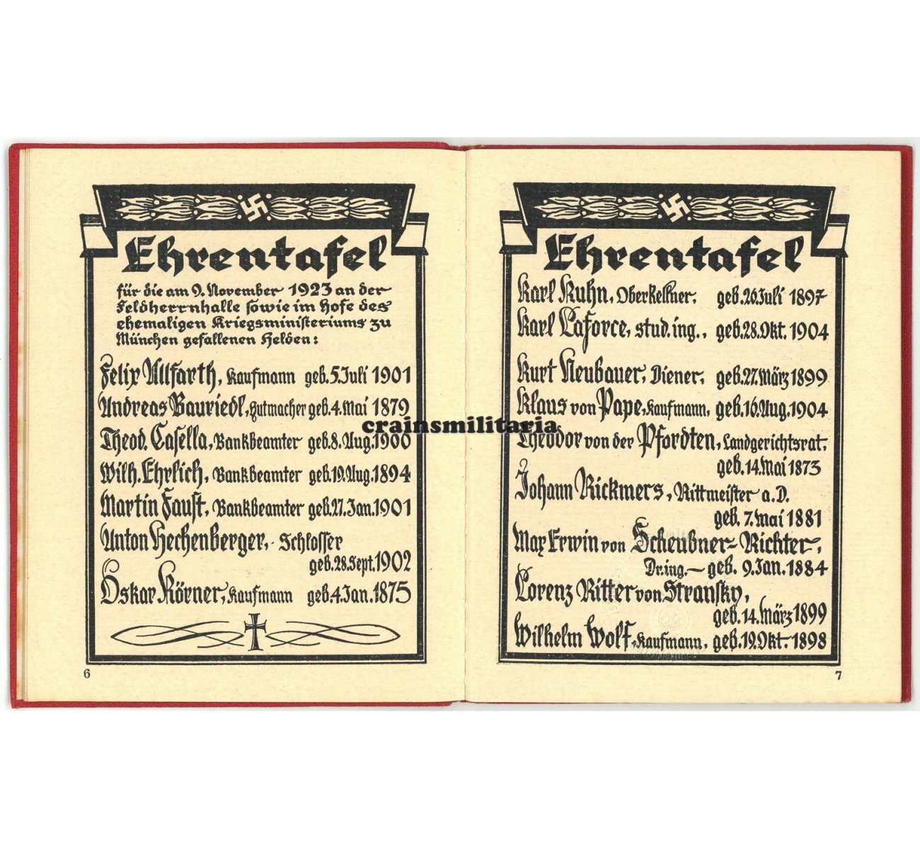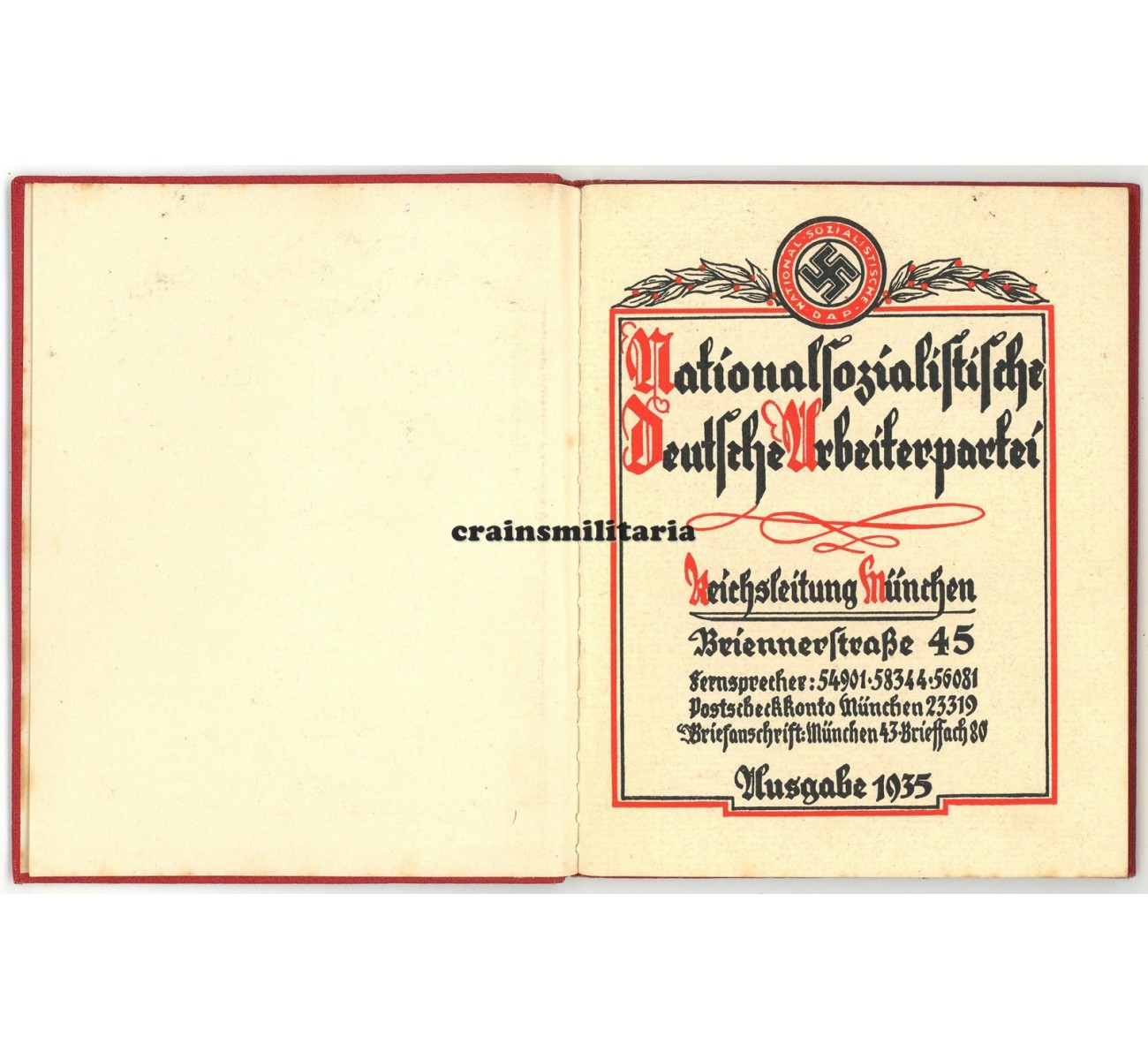 The book is a 1935 version produced by the Reichsleitung München, including seven introducing pages with the list of the 1923 Putsch victims and an introduction by Hitler. It was issued in October 1938 by the NSDAP Ortsgruppe Hamburg - Jarrestadt. Given his civilian profession, it is quite possible he joined the Luftwaffe at a later stage, the stamps stopping in 1941 also point in this direction.