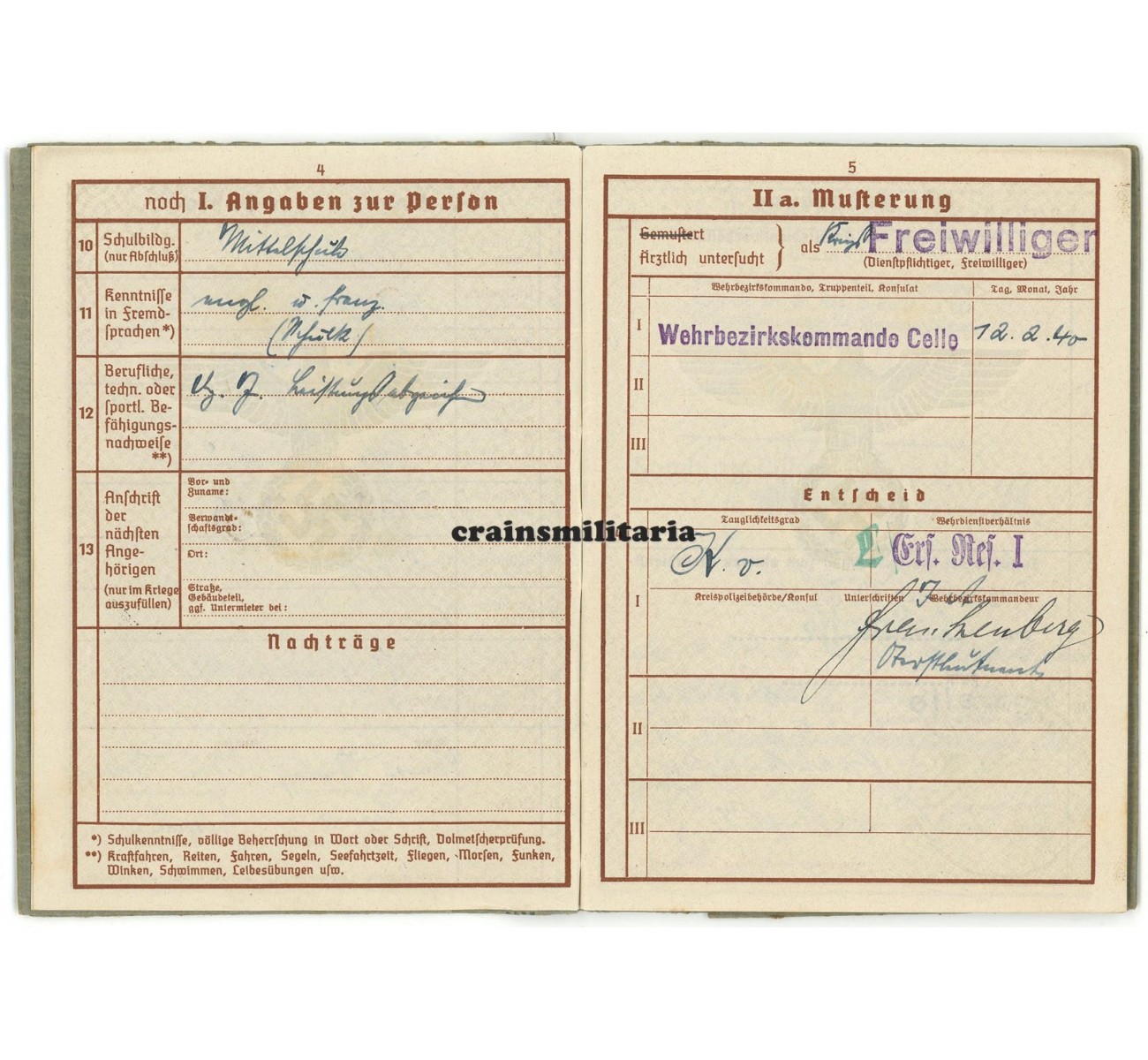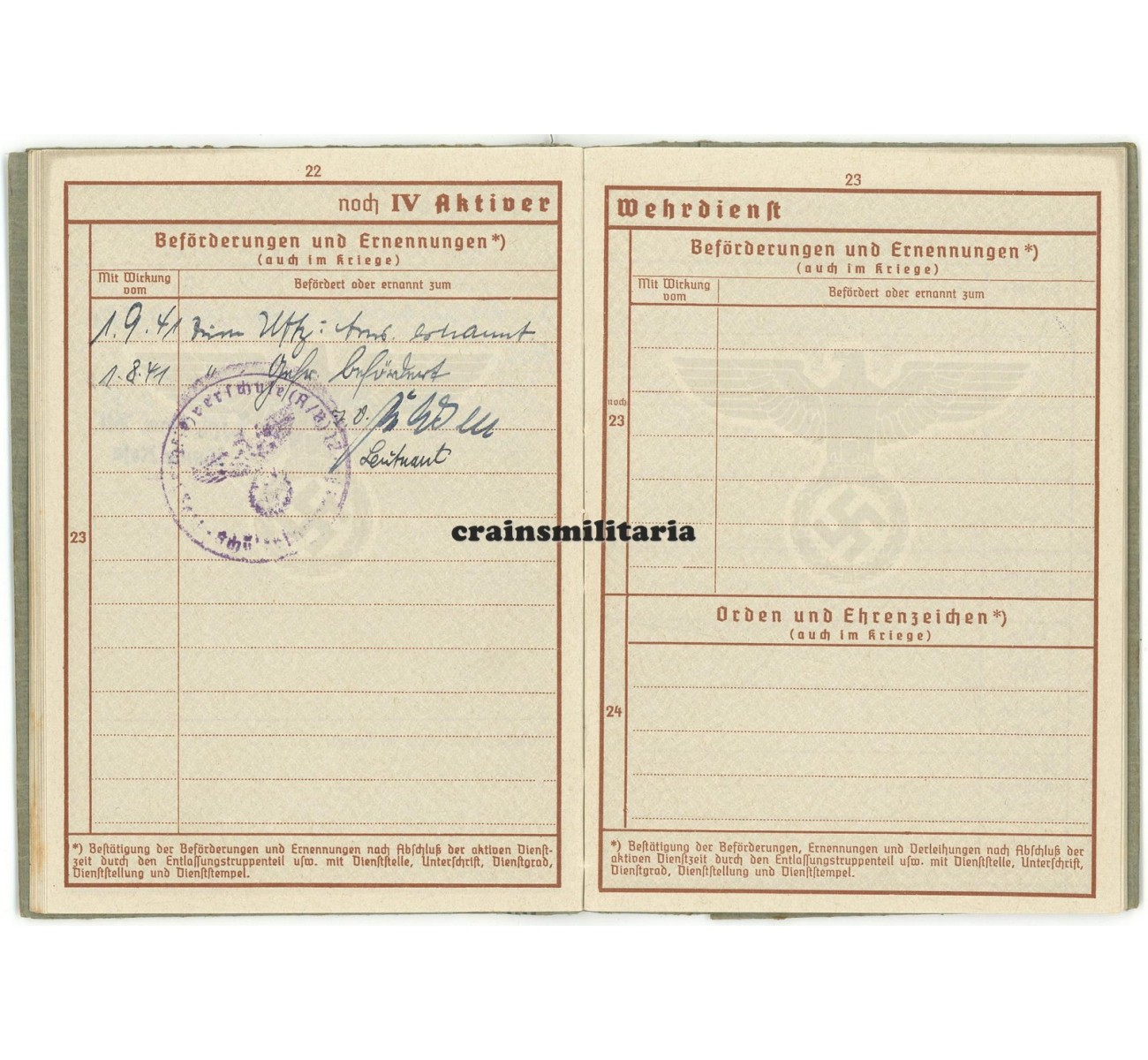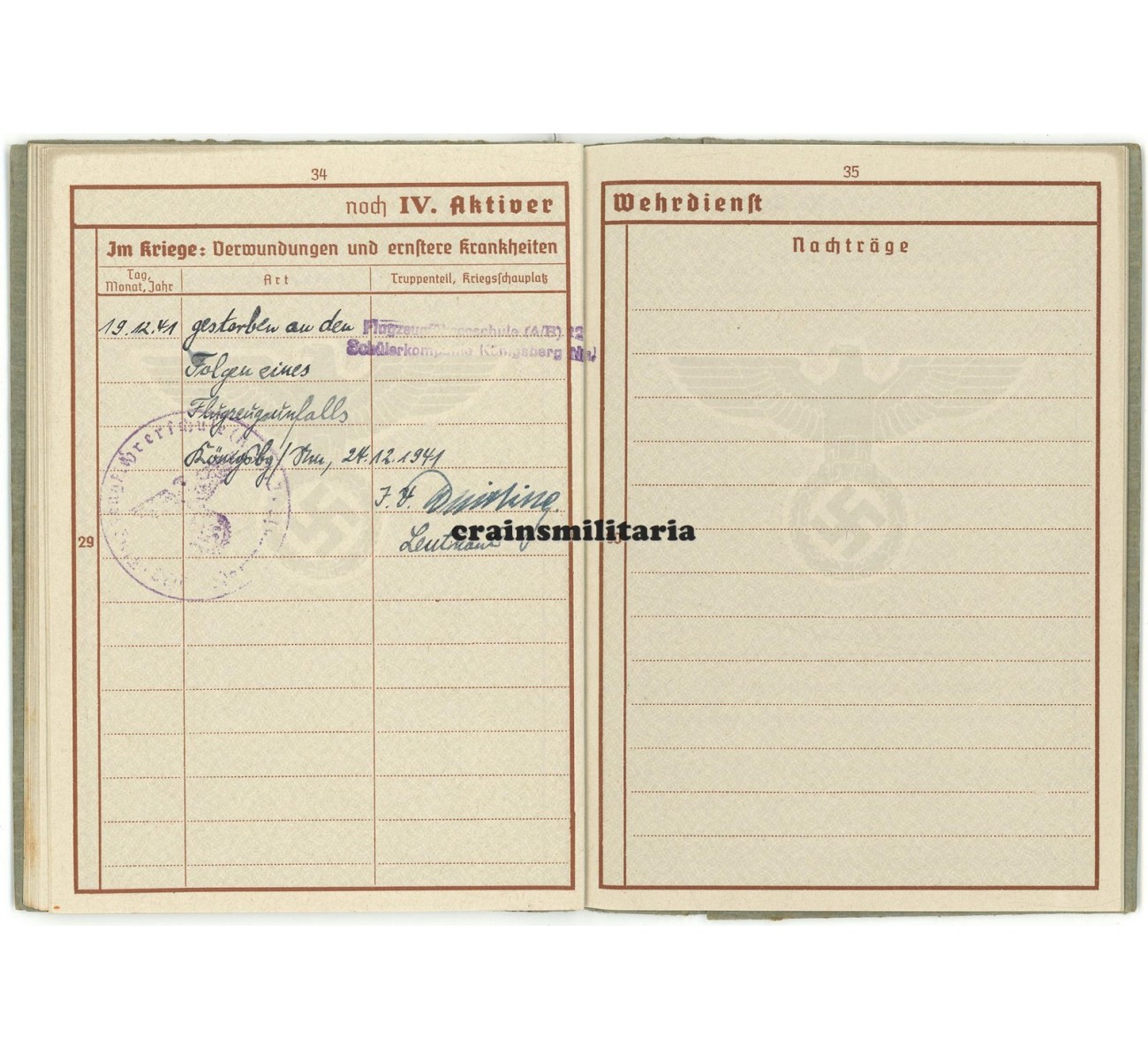 The Wehrpass is in complete and excellent condition. It comes with the accompanying letter sent to the parents. The WASt archive cards providing more details are shown just for reference.
