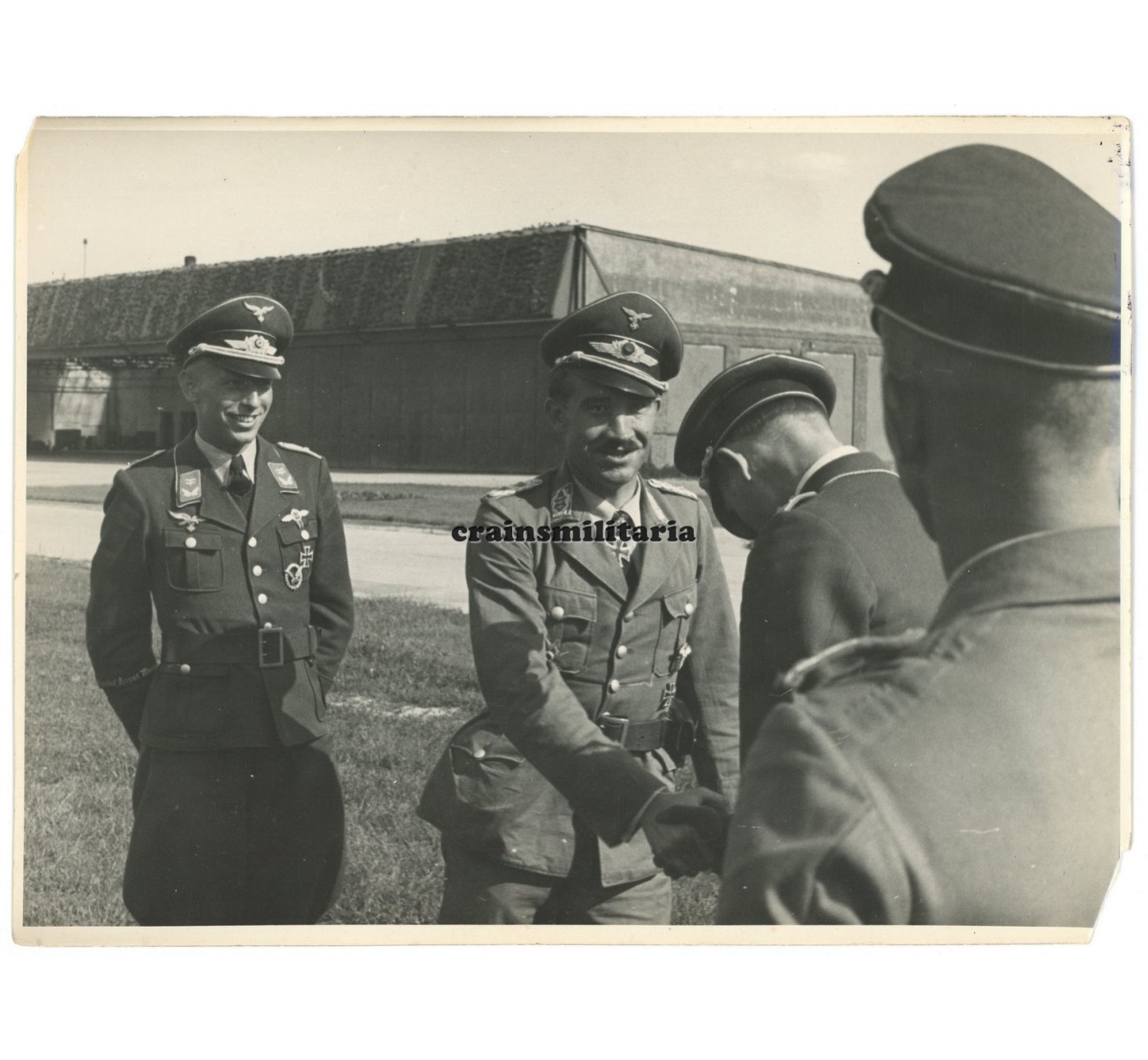 - Large sized private produced photo of Knight's Cross with Oak Leaves, Swords and Diamonds winning legendary fighter ace Adolf Galland visiting the Fliegerhorst Deblin, Poland, in 1942. Also notice the Oberleutnant on the left wearing the "Geschwader Horst Wessel" cufftitle.