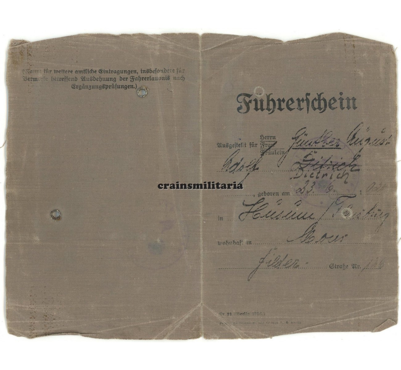 Soldbuch grouping to Oberleutnant Günther Dietrich, a young officer of the Marineflak who ended up in Festung Lorient, one of the Atlantikwall fortresses in France, 1944-'45. Dietrich already made it to officer shortly after his 22nd birthday in July 1942. He first served with Marine-Flak-Abteilung 211 (Eckernförde) and then Marine-Flak-Abteilung 221 (Kiel-Dehnhöft). By early 1944, he was with Marine-Flak-Abteilung 817 protecting the port and important U-Boot base of Lorient, in the Bretagne area in France. Following D-Day and the breakthrough from Normandy, this harbour city was completely surrounded by the Allies and declared an Atlantikwall Festung. In this time frame, Dietrich earned both the Kriegsabzeichen für die Marineartillerie, and the KVKII mit Schwertern. The fortress held out until the end of the war; Dietrich was only captured in May 1945 and survived the war.