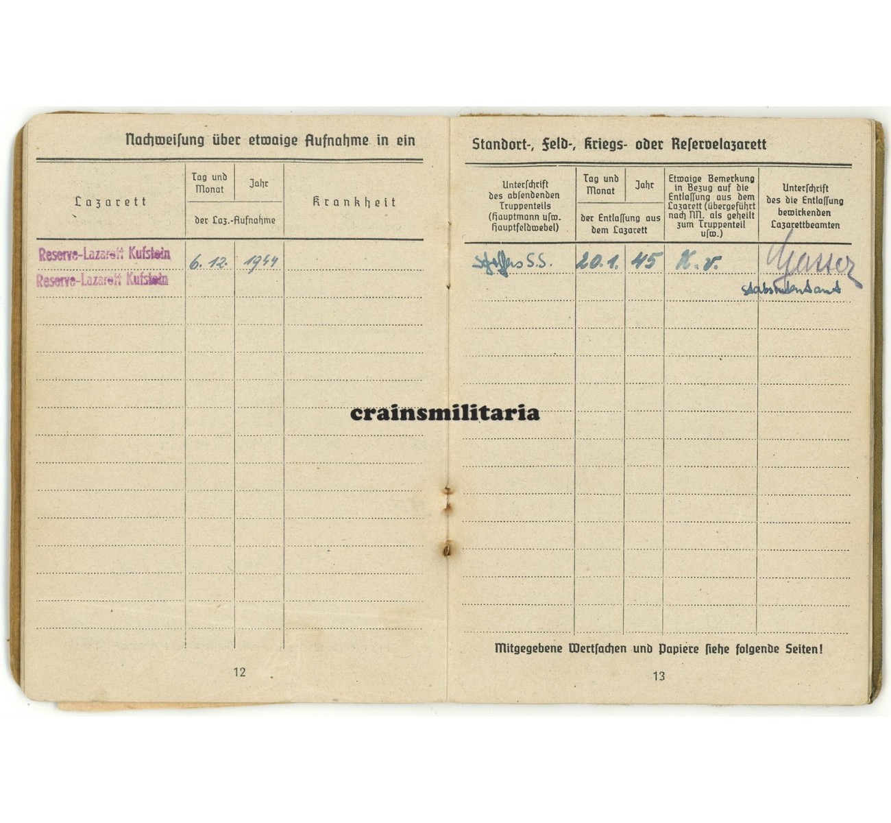 The small but fantastic "Bandenkampftage" anti-partisan combat day list at the back of the Soldbuch mentions two operations in particular: on 8th of October 1944 in Tarnova, and the next day in Loqua. Tarnova is now called Trnovo (Nova Gorica) in Slovenia, Loqua is the nearby Lokve, both just east of the border city Gorizia. Eder entered hospital in Kufstein in December 1944 and was found fit again late January 1945. He ended the war in officer training.
