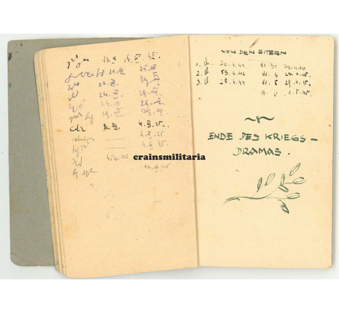 - Notebook "Notizheft", in which he kept all the dates of his outgoing and incoming mail in 1944-'45.