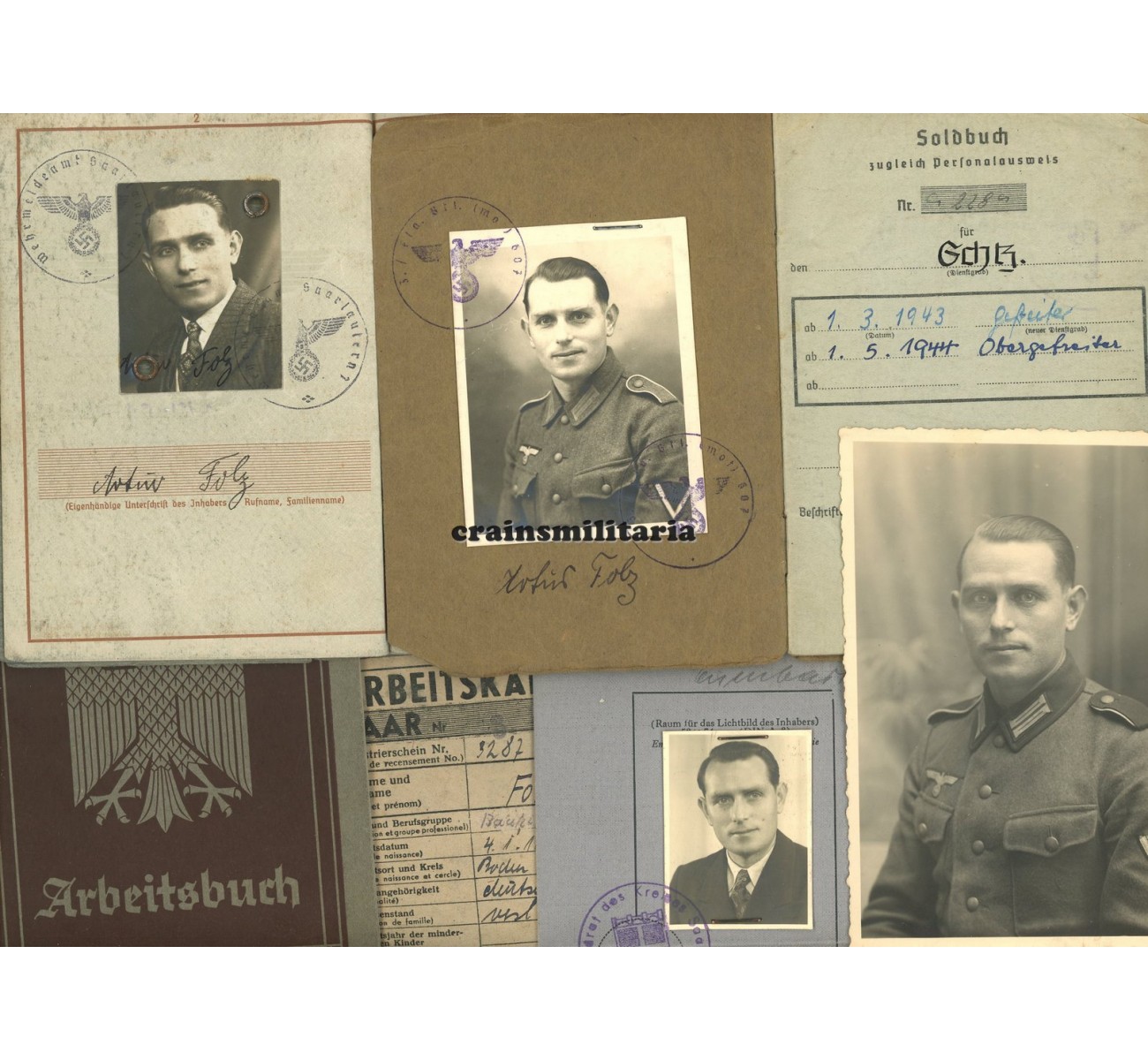 Grouping to Obergefreiter Artur Folz. Losing his father on the battlefield in 1917, Folz grew up working in the mines in the Saar area. This would also mean he avoided military service until February 1942, when he was called up by the Heer and trained as a Heeresflak soldier. June 1942, Folz entered his field unit: the 3. Kompanie of Fla-Bataillon (mot.) 607, with whom he would serve until the end of the war.