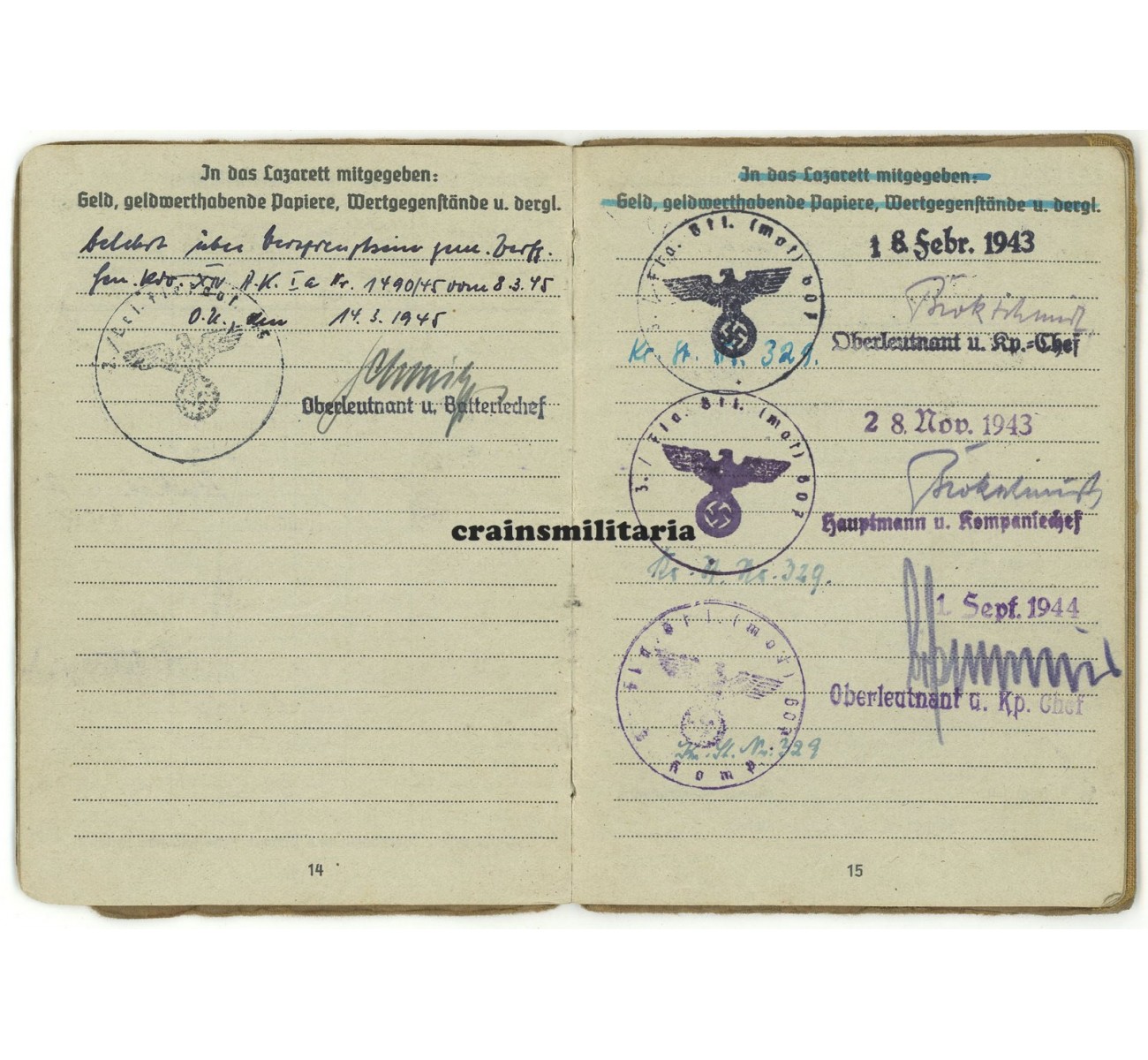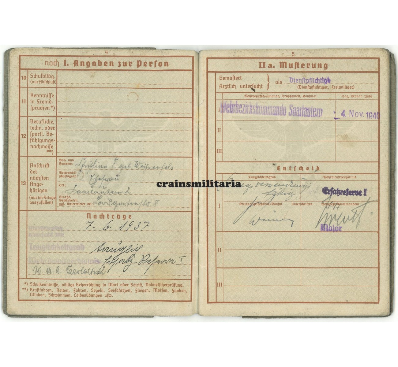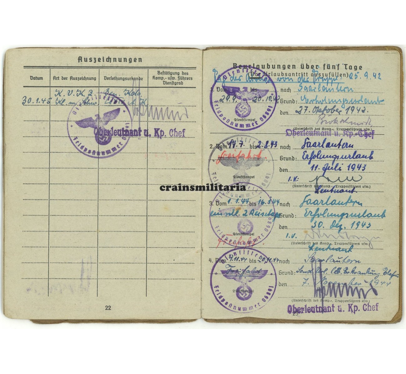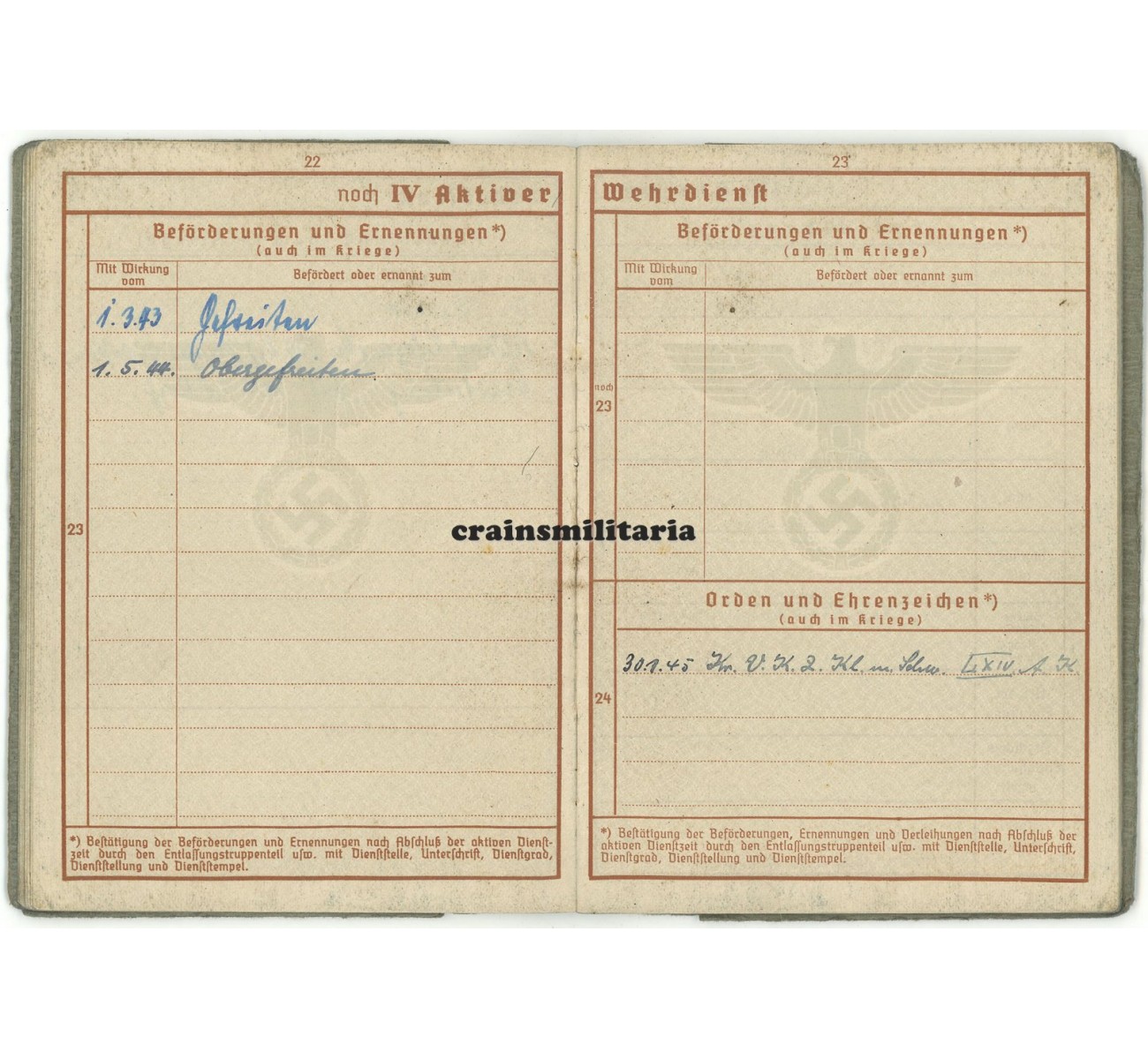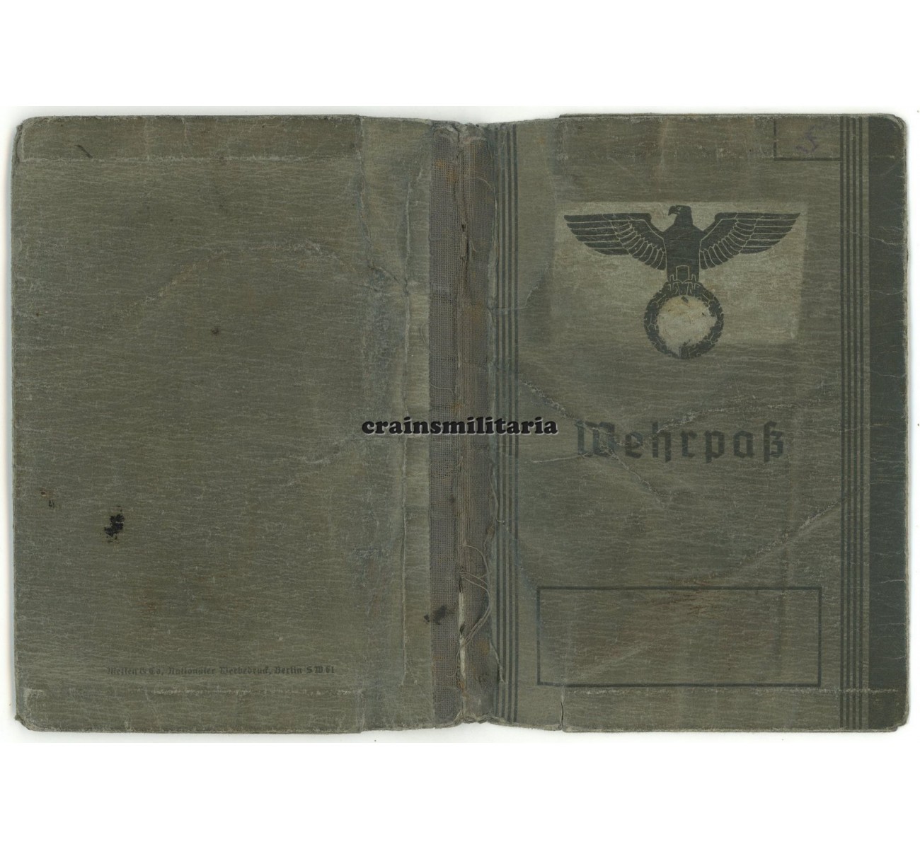 - Soldbuch, first issue from February 1942. Notice the nice 7.65 mm "Unique" pistol entryon page 8c.