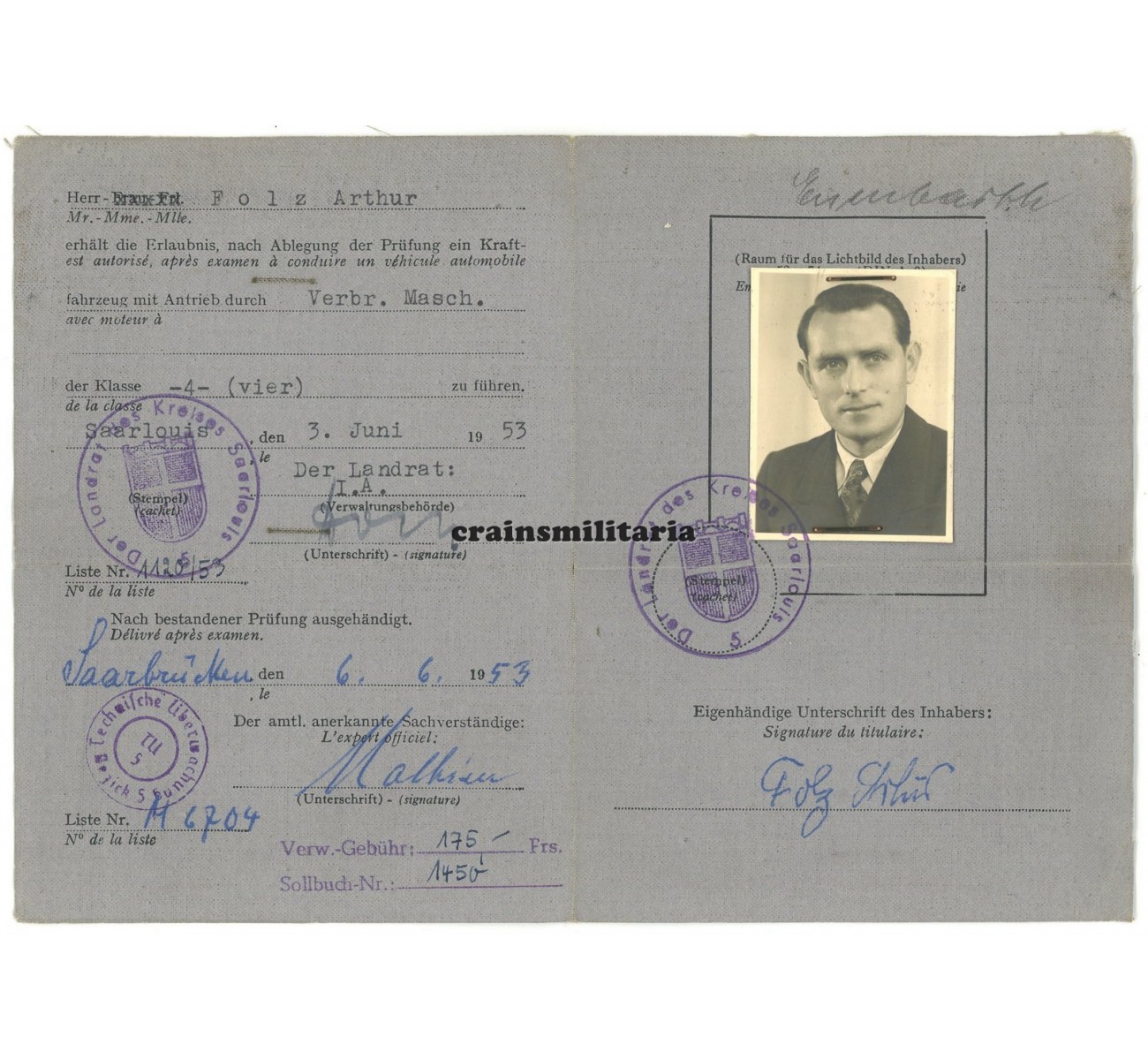 - Four more wartime and early postwar documents, including his 1953 Führerschein.