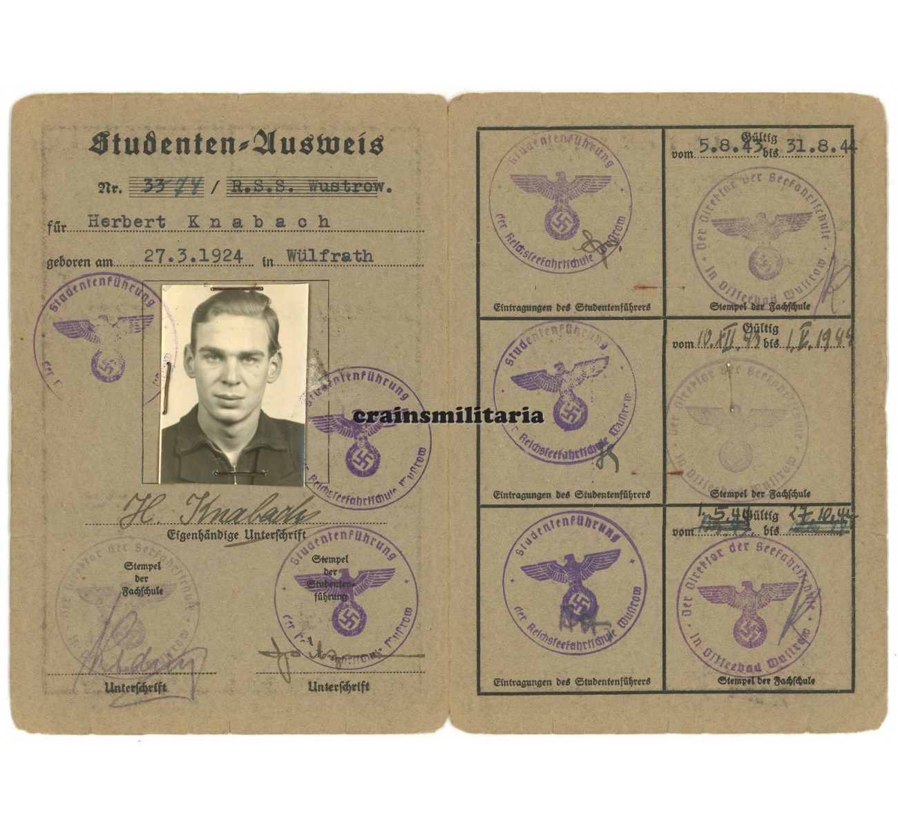 Knabach earned an early EKII in December 1940 while only 16 years old!! The Blockadebrecher-Abzeichen followed in August 1941. Clearly he excelled in his function on board of a merchant ship, slipping through the Allied naval blockades. Further research could provide the identity of the ship he was on at the time. The 'Reichskleiderkarte' also included in the grouping reveals he later served on the MS Gotenland. Seized by the Germans in Denmark, this ship was notably used to deport 158 Norwegian jews from Oslo to Stettin, where they were transported to Berlin and eventually put on a train to Auschwitz.