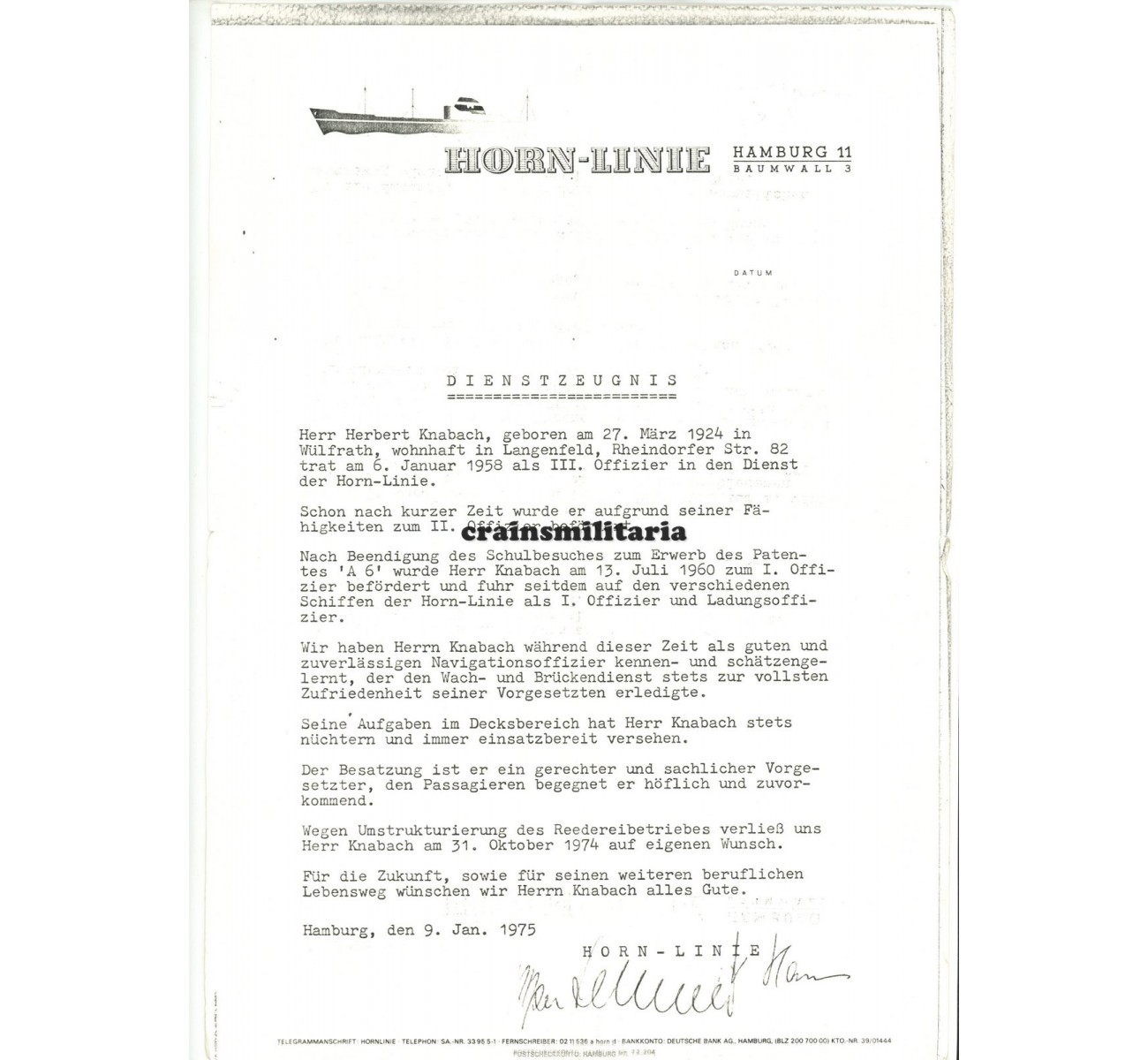By 1944, Knabach studied at the Reichsseefahrtschule Wustrow. He survived the war and continued his career as a naval officer, last as captain and first officer on large long range vessels.