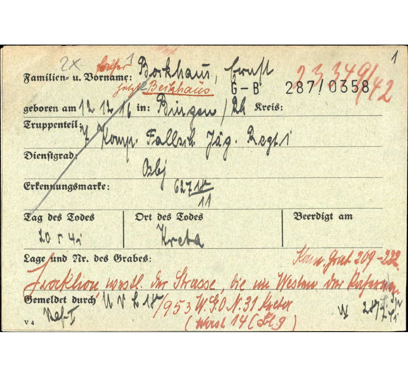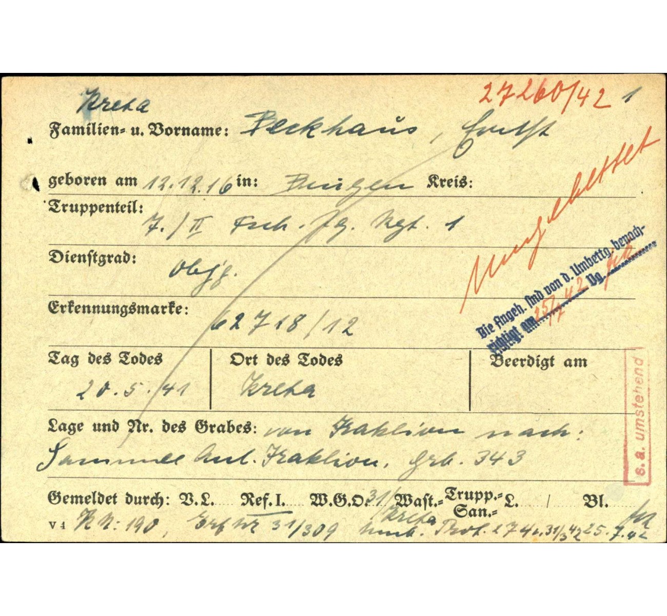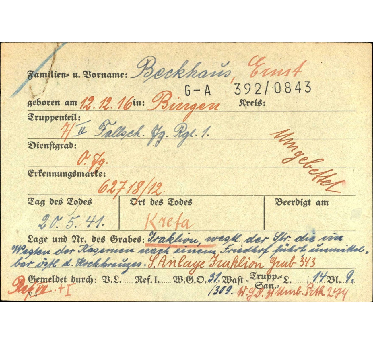 The WASt archive cards providing more details on his death are shown for reference only.