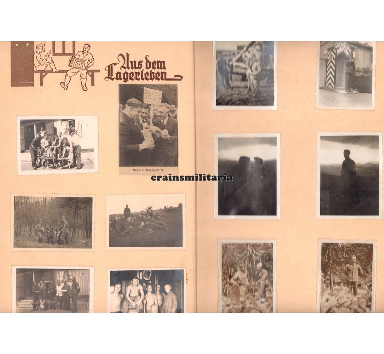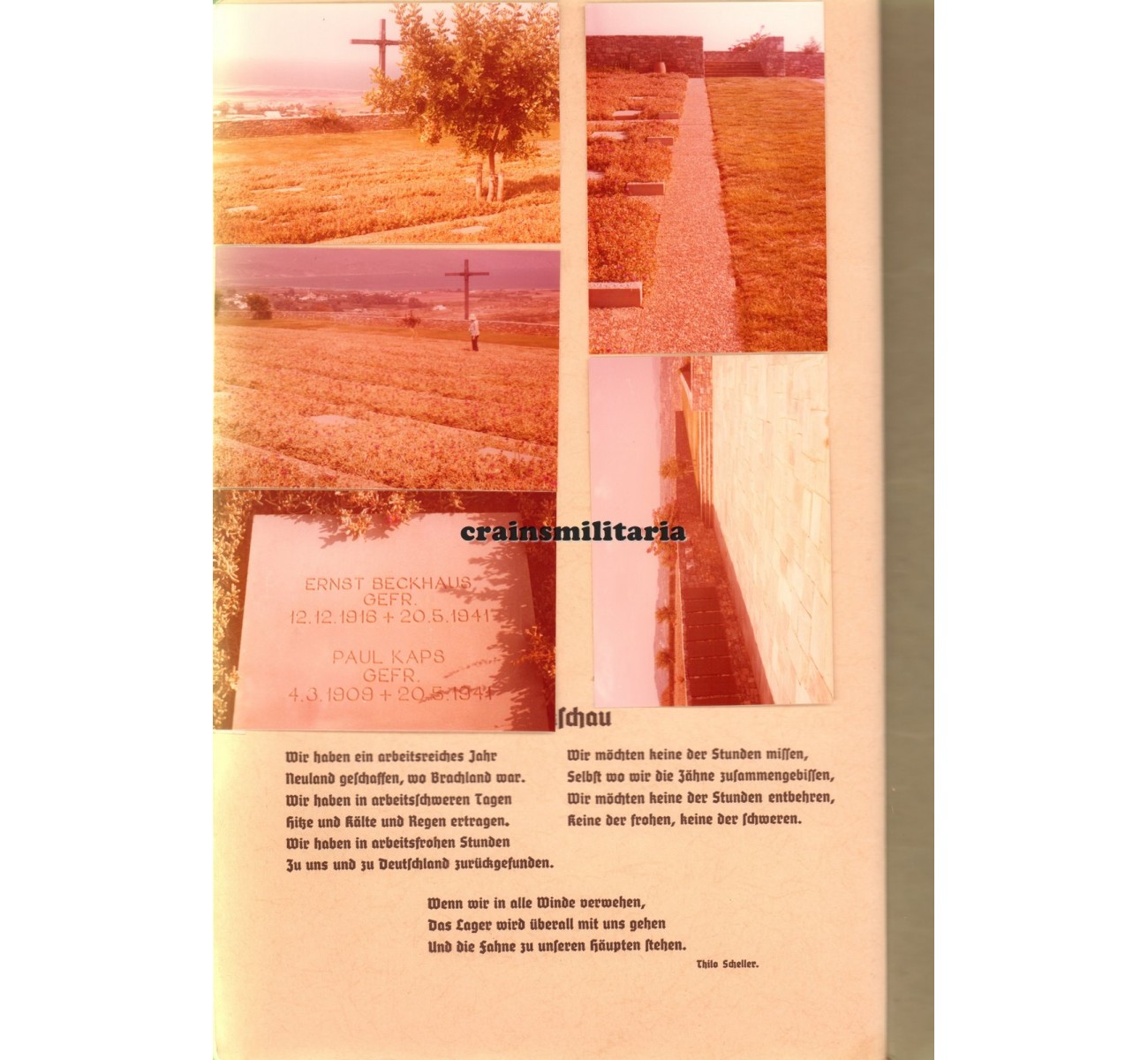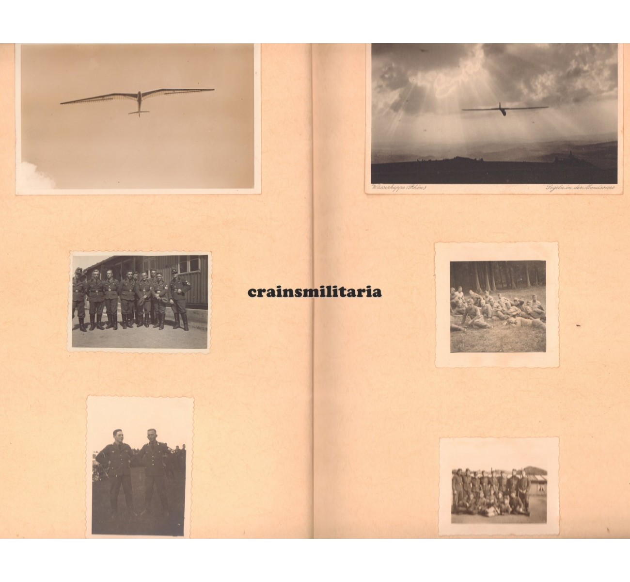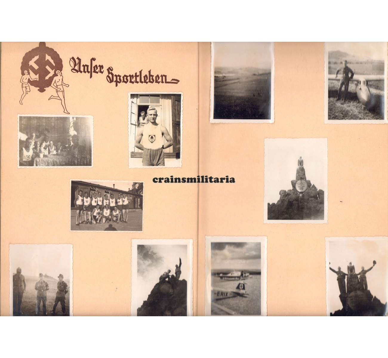 - Photo album from his RAD time, over 40 photos in a nice cover from Arbeitsgau XXII (Kassel), serving with RAD-Abteilung 1/224 in Goppenhausen, 1936. Includes a postcard sized studio portrait, a very large group portrait, photos with gliders and airplanes, and more. On the last page, his family pasted five photos of his grave on Crete. Most but not all photos are shown here, quality of the images is much better in original.