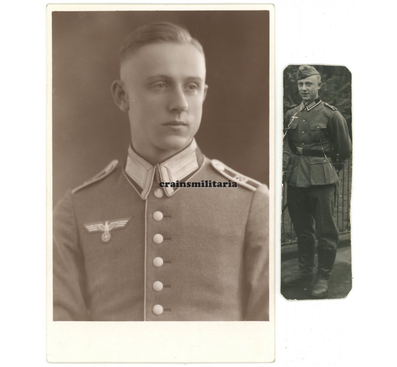 - One postcard sized and one smaller portrait photos of his prewar Heer service.