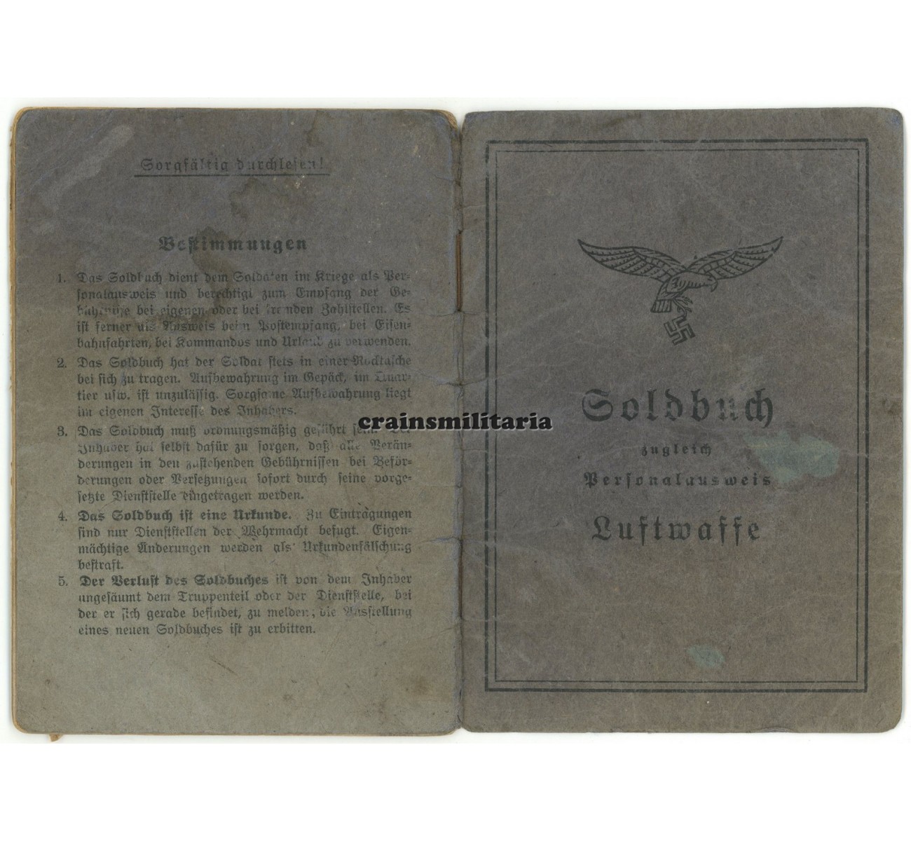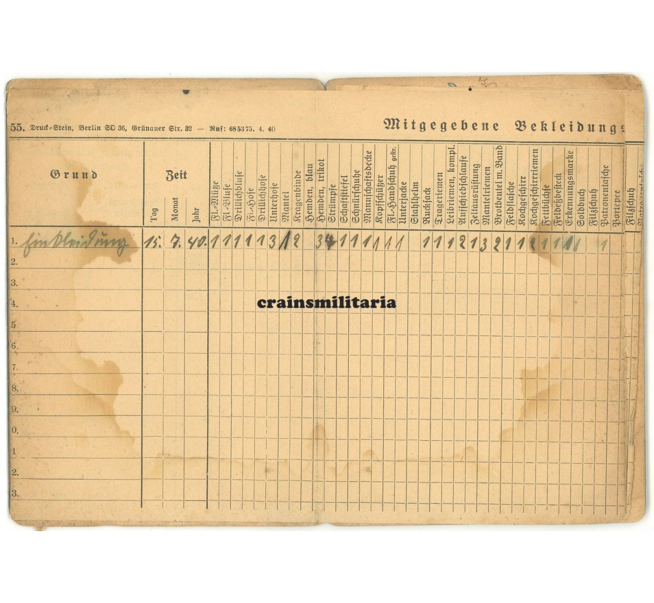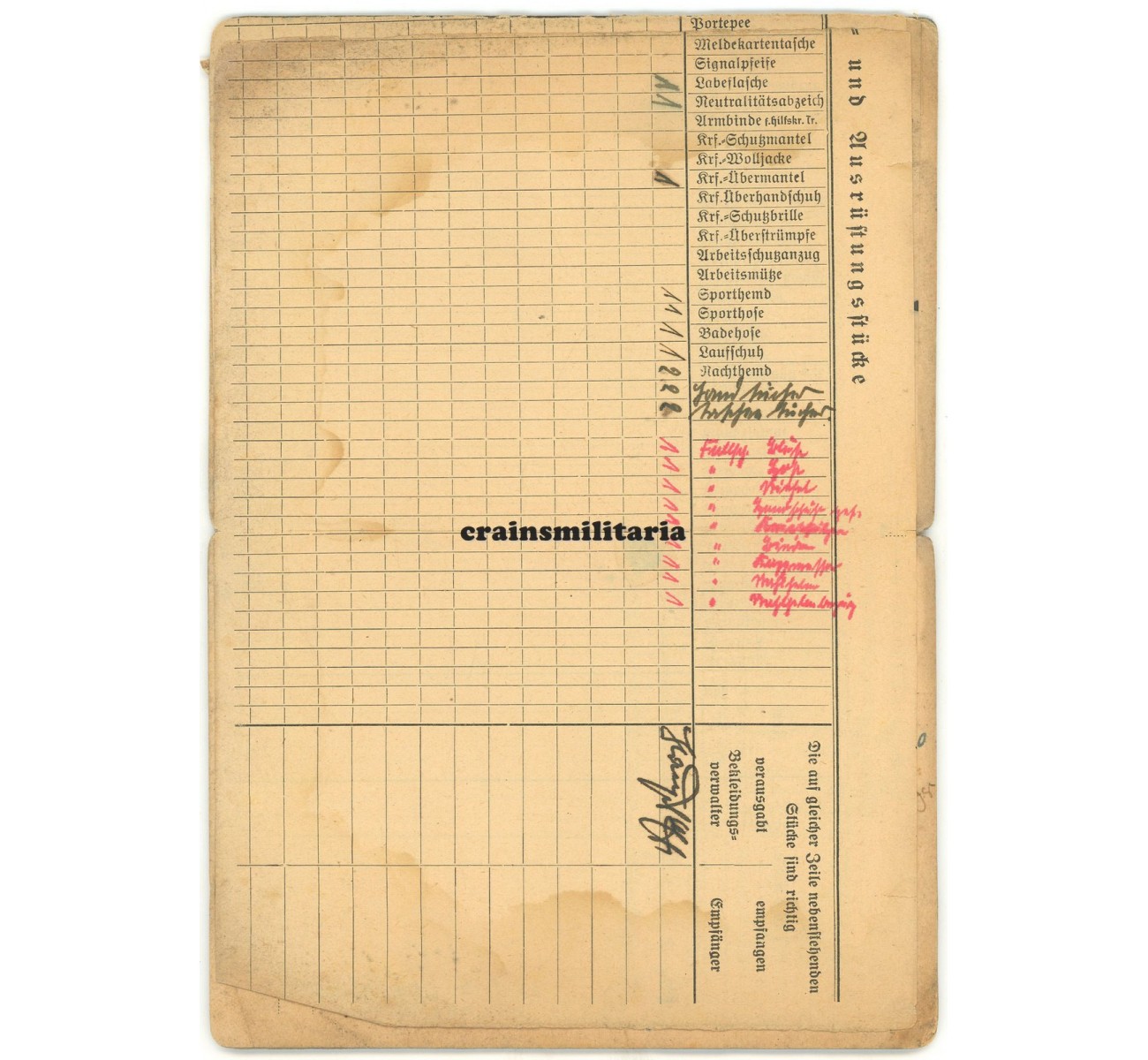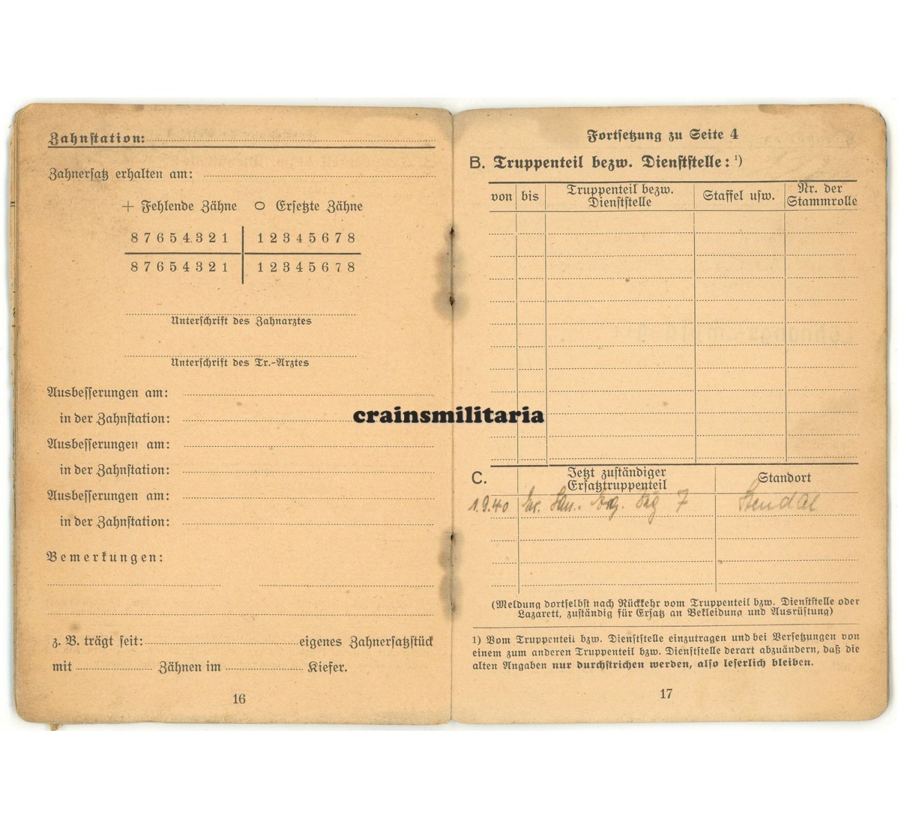 The Soldbuch is a 100% complete and in very good condition. A portrait photo was never inserted. Notice the long list of FJ uniform and equipment pieces entered on the extra page 6/7.