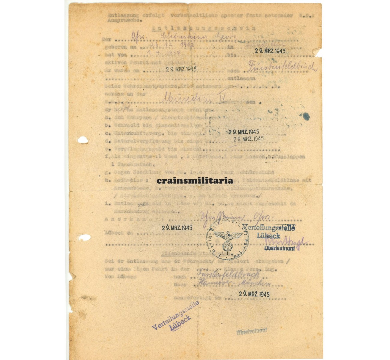 - Entlassungsschein, March 1945.