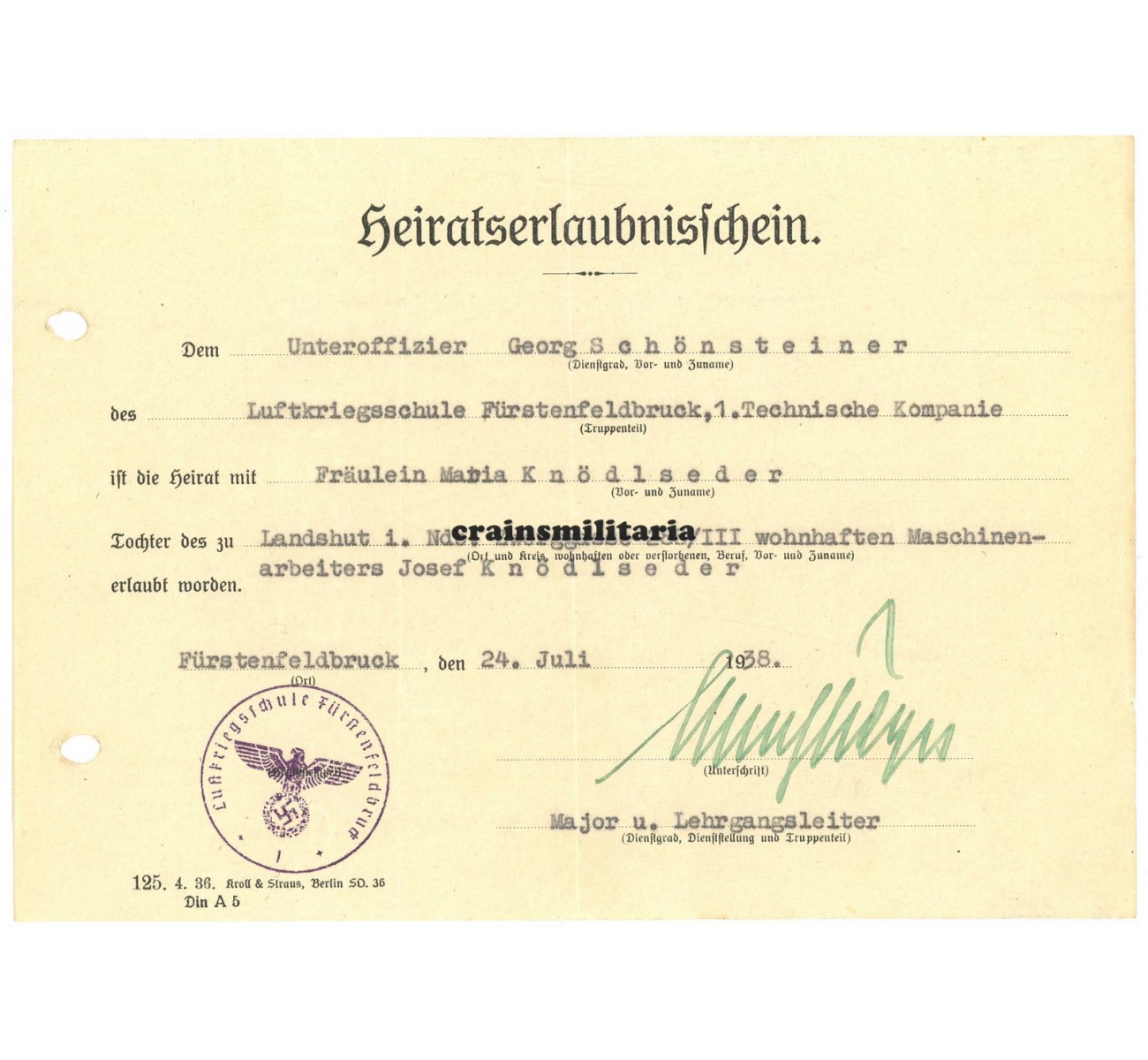 - Four more wartime documents including the permit for his wedding and his 12 years voluntary service document.