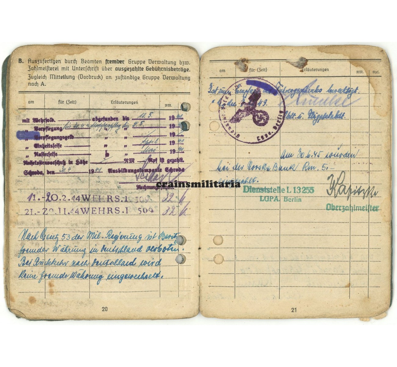 Soldbuch to Obergefreiter Bruno Hammer. First issue from March 1941 started with the Ausbildungskompanie Schroda. Hammer served mainly with airport command units in Norway. He was at Oslo-Gardermoen (1941-'42), and then on the Arctic front in Banak (1942-'43) and Altagard (1943-'45). Following the surrender of the German army in Norway in May 1945, he was brought back to Oslo as a POW.