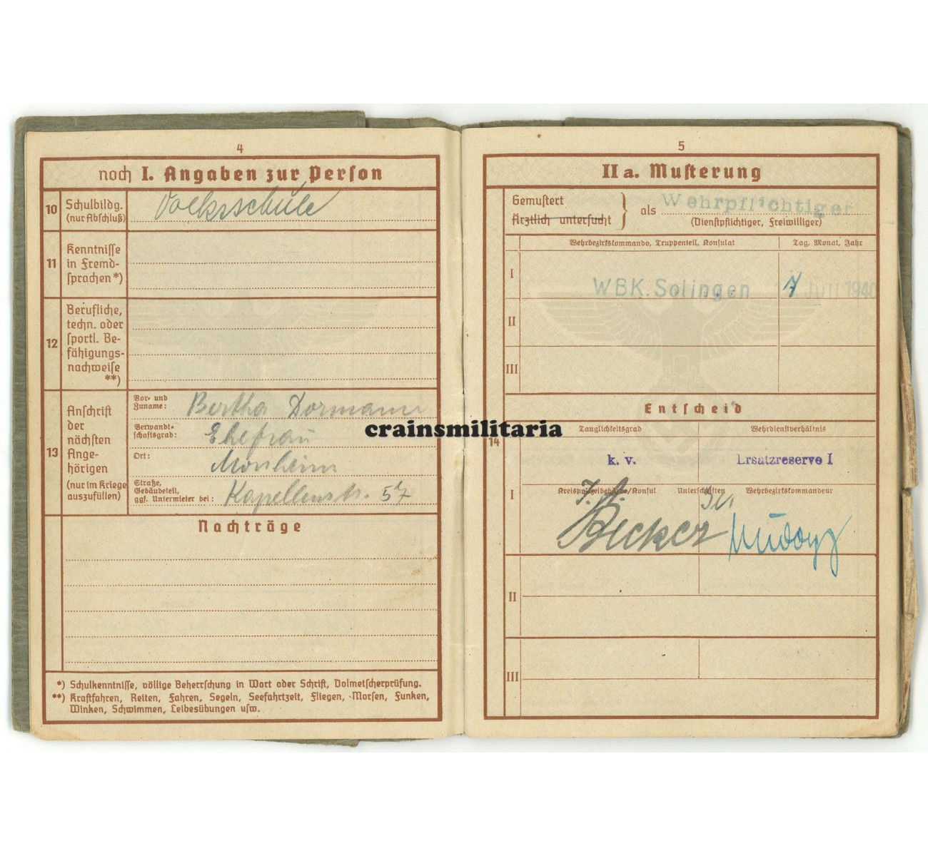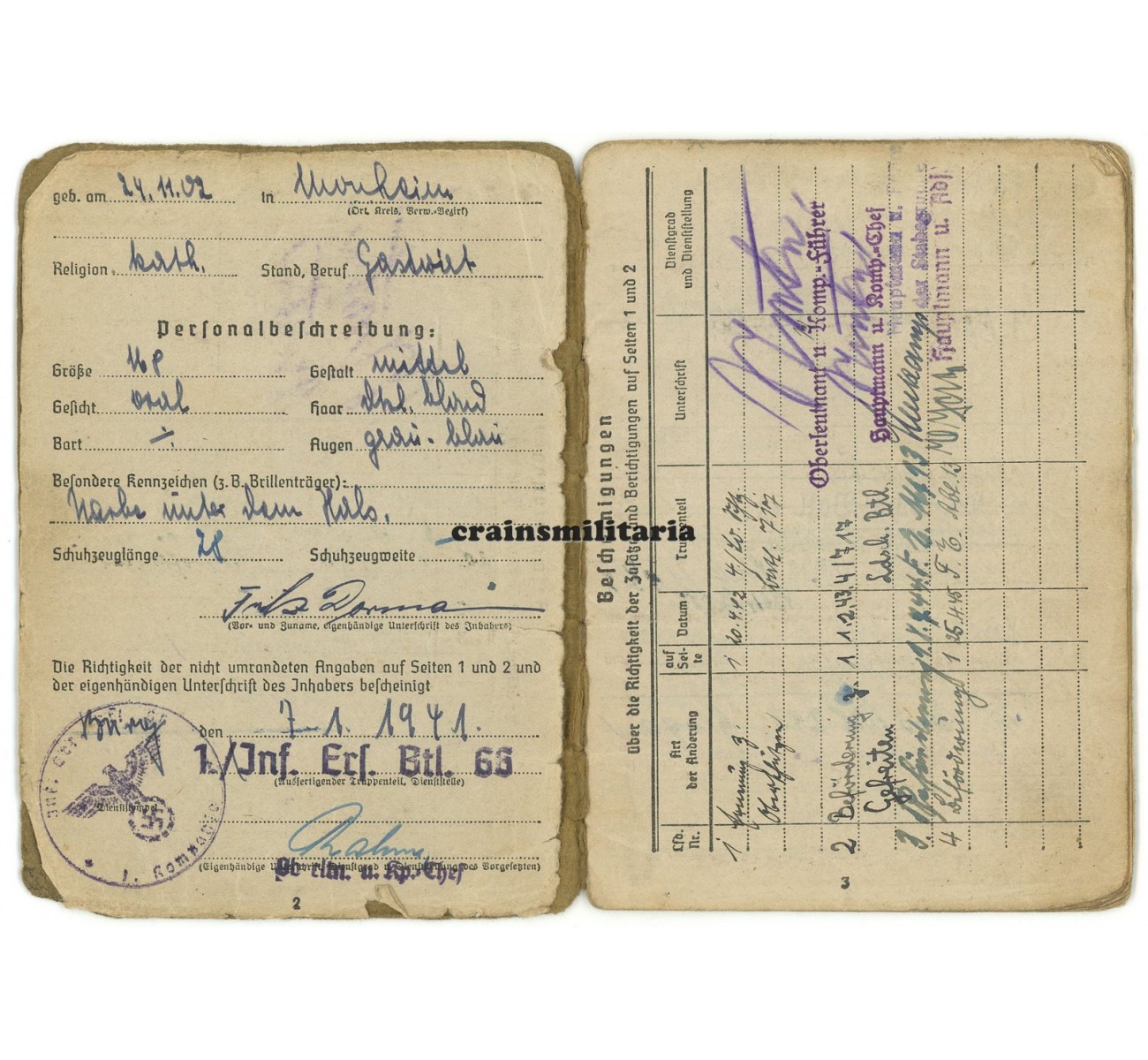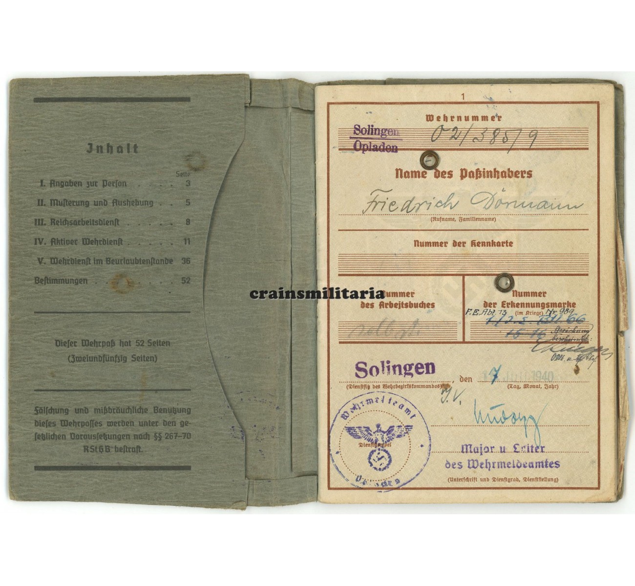 - Wehrpass, complete and good condition.