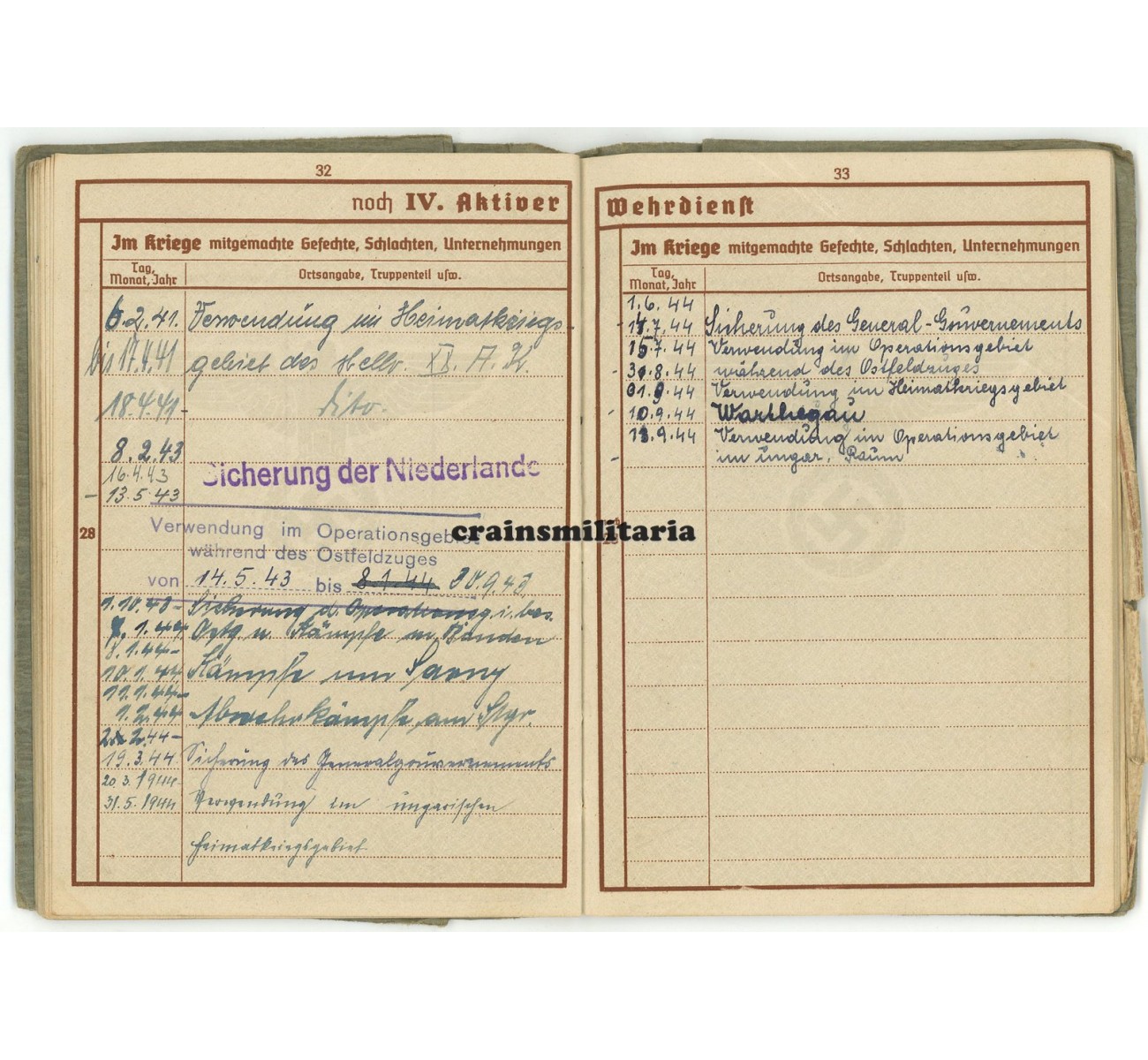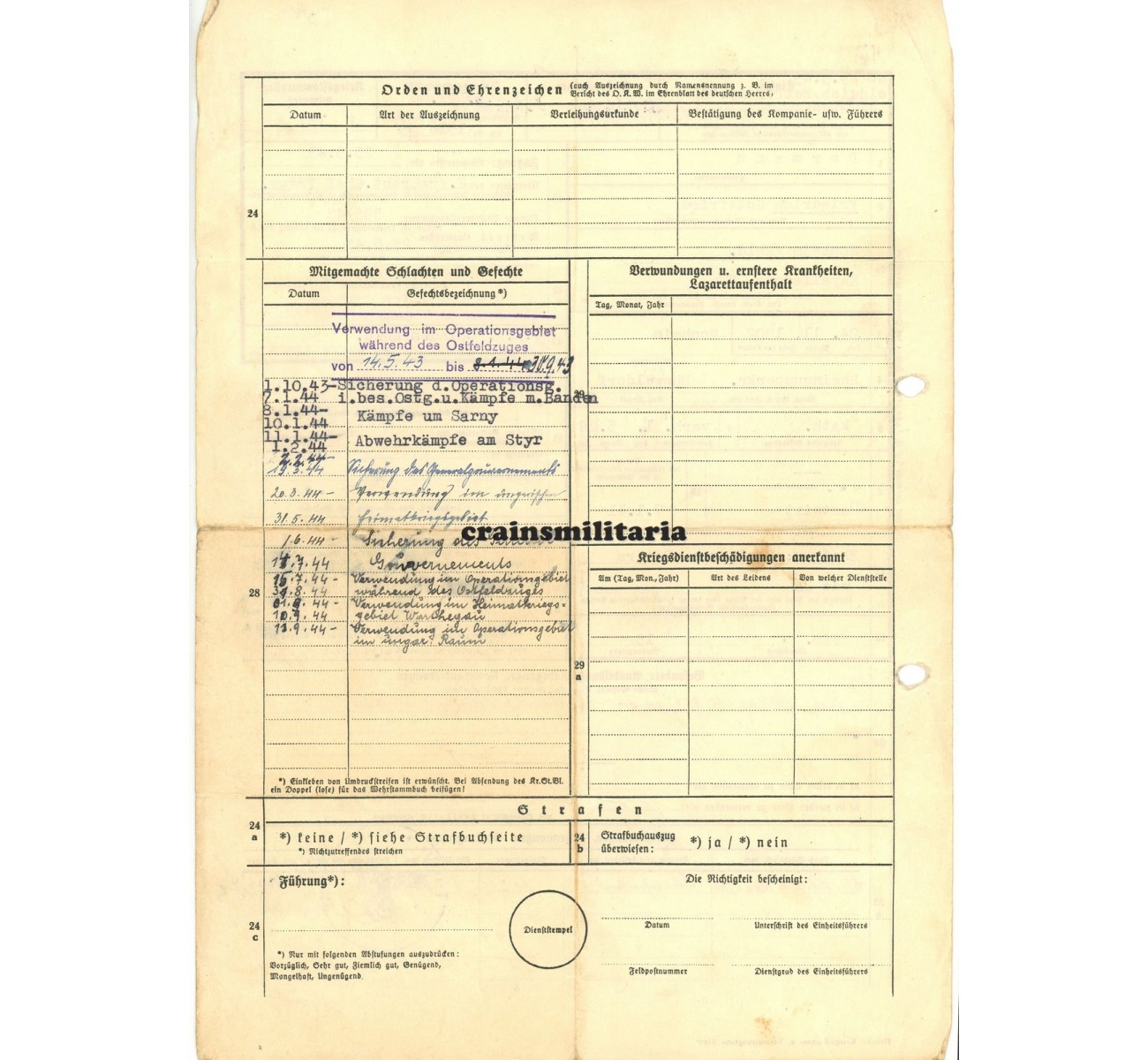 - Three Wehrstammrolle documents, confirming the battle list and other details.